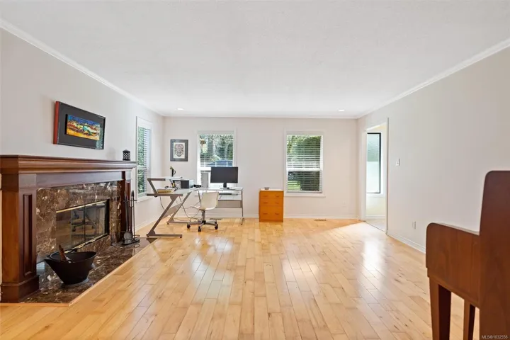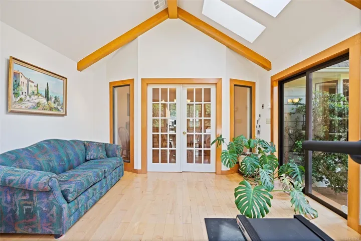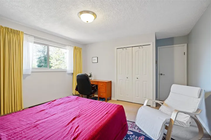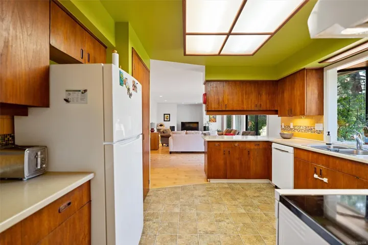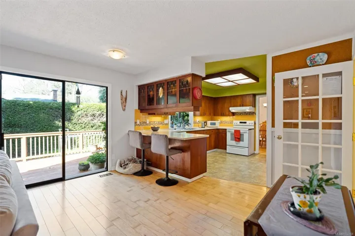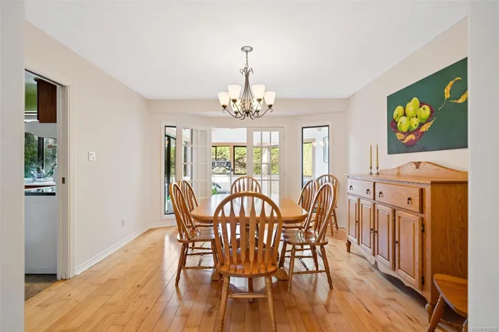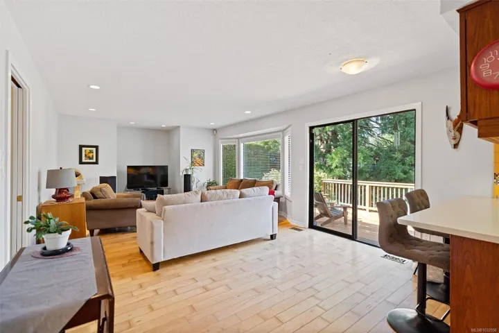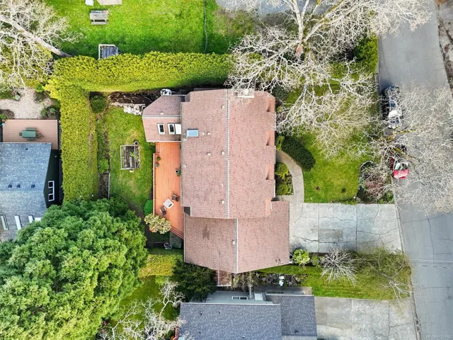 Welcome to this well maintained family home, perfectly situated on a quiet cul-de-sac in one of the most desirable neighborhoods. Simply gorgeous! Upstairs features 4 large bedrooms (perfect for a large family), including a primary with a spacious ensuite. The main level offers a family room off the teak kitchen, plus a living room and den, with walk-out access to a huge 34×15 deck overlooking a completely private, park-like backyard. French doors in the separate dining room open to a fabulous sunroom with bonus space. Main bath updated, most windows replaced, newer heat pump, and hot water tank (2025). Double car garage with extra space for a workshop. Fully enclosed fenced yard and beautifully landscaped. Surrounded by mature trees & lush landscaping in the sought-after Mount Doug neighbourhood. Just minutes to top schools, shopping and Mount Douglas Park trails, this is a rare opportunity in a peaceful, established neighbourhood.