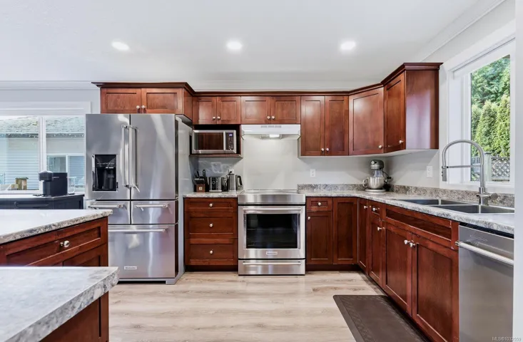 Welcome to this beautifully updated 3-bedroom, 3-bathroom home in a quiet and sought after South Nanaimo neighbourhood. Offering nearly 1,500 sq ft of well-designed living space, this home perfectly blends comfort, style, and convenience. Inside, you’ll find a bright and inviting layout featuring new flooring, a cozy gas fireplace, crown moulding, and modern updates throughout. The kitchen is equipped with newer appliances, making it both functional and stylish for everyday living and entertaining. Stay comfortable year-round with a newer heat pump system with four head units, providing efficient heating and cooling throughout. Step outside and enjoy the thoughtfully designed outdoor spaces, including a covered patio, firepit, and spacious deck with large pergola, ideal for relaxing or hosting family and friends. Located in a great neighbourhood known for its peaceful atmosphere, this home is just minutes from all amenities, including shopping, recreation, and scenic walking trails.