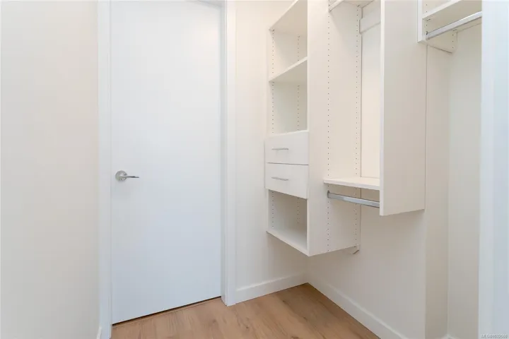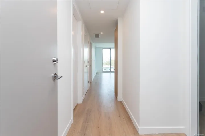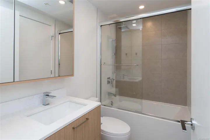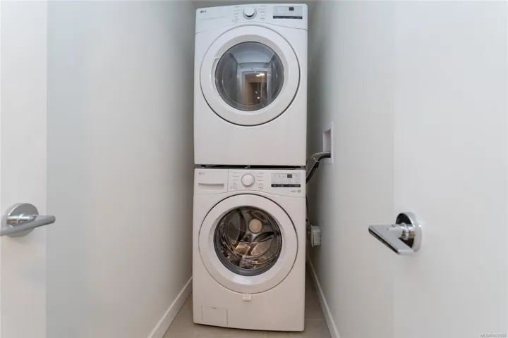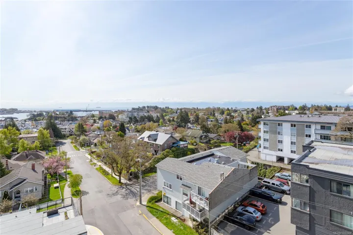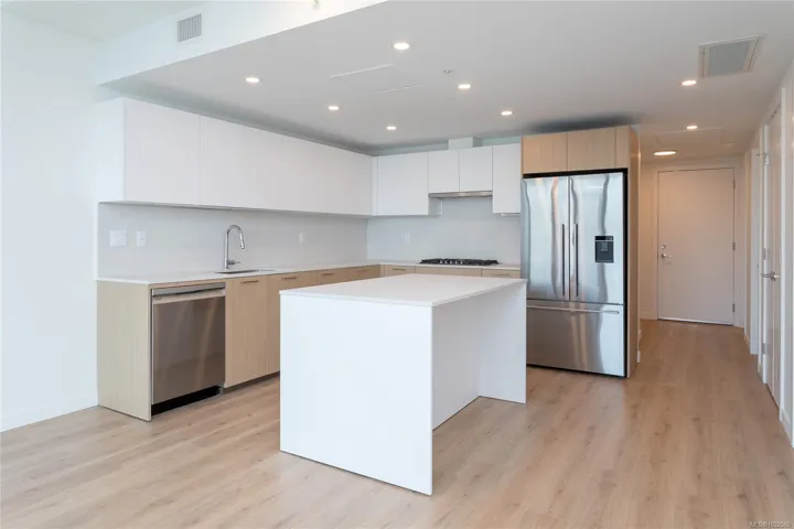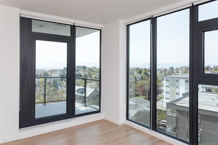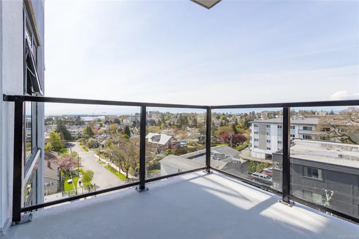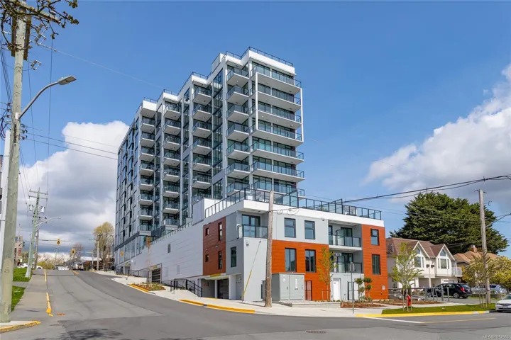 Welcome to Pacific House, Greater Victoria’s only steel and concrete condominium project completed in 2026. Ideally positioned in Esquimalt, the building is thoughtfully designed to follow the natural slope toward Westbay Marina, capturing views toward downtown Victoria. This boutique residence offers a highly walkable and bike-friendly lifestyle just minutes from downtown, along with a striking glass façade and a podium-level indoor-outdoor amenity space, including a fully equipped lounge for entertaining. This southwest facing two-bedroom home features a private balcony with gas hookup, premium appliances including a 36” Fisher & Paykel fridge and Bosch 5-burner gas range, and quartz countertops with full-height backsplash. The spa-inspired bathroom includes heated floors, a rain and handheld shower, and ample custom storage. Complete with individually controlled heating and cooling, this home blends modern design with comfort in a central, sought-after location.