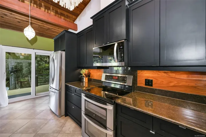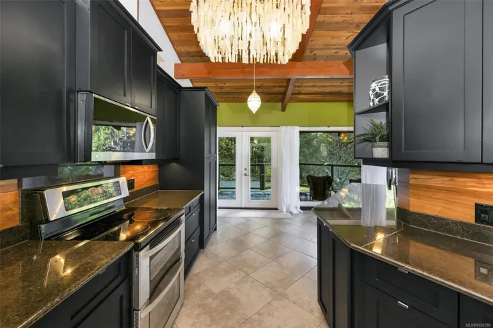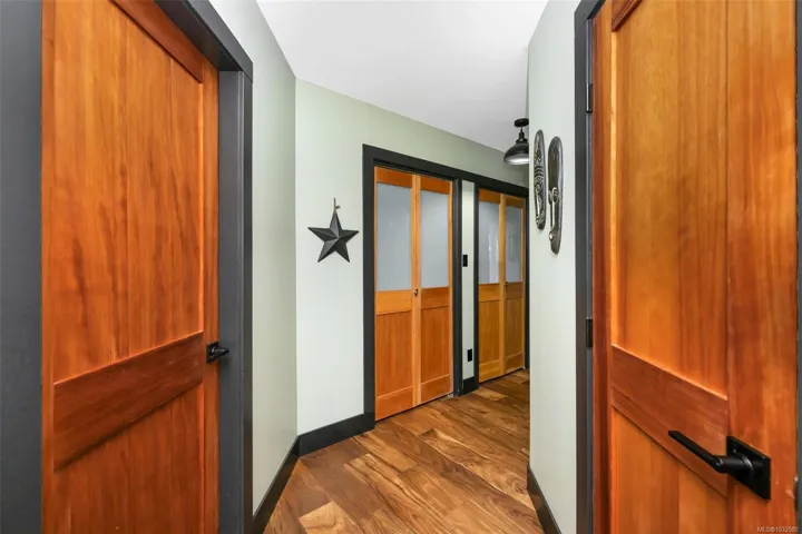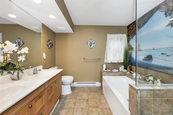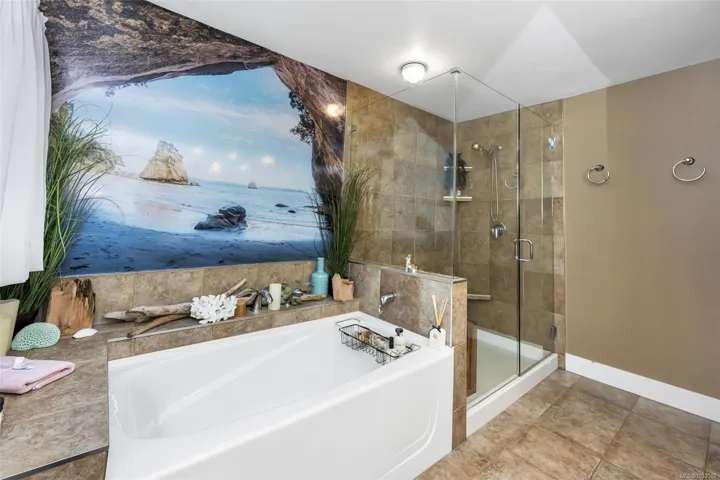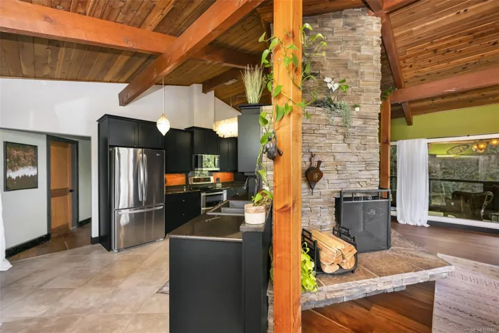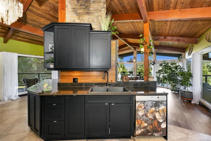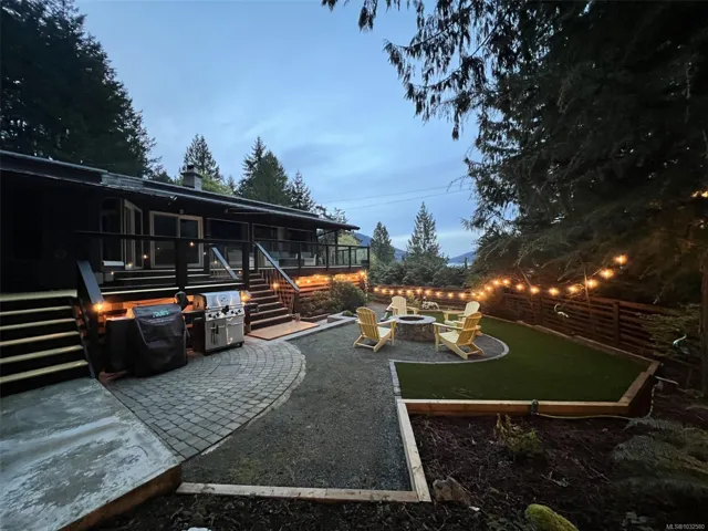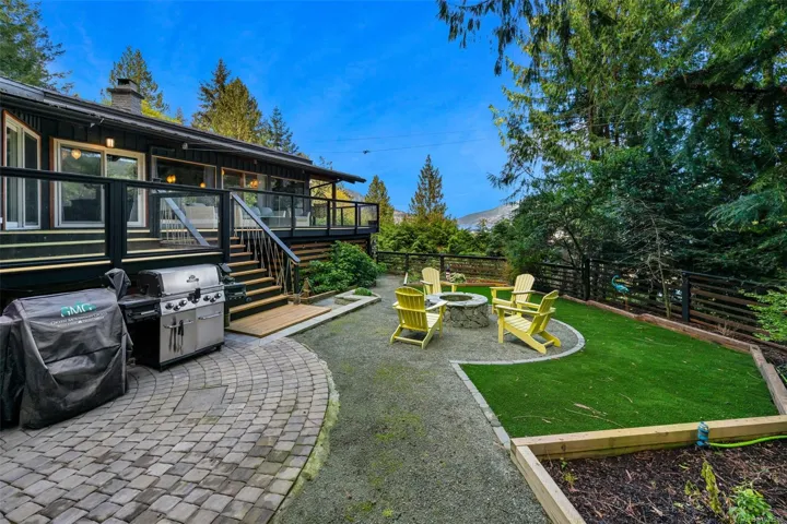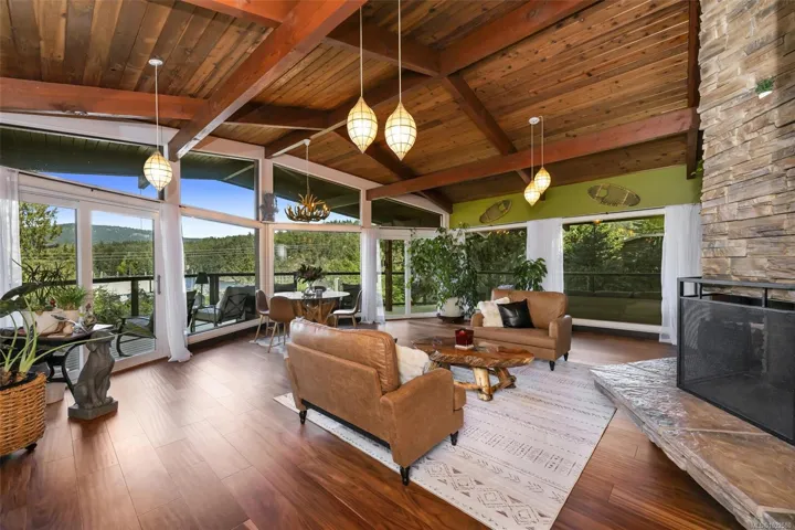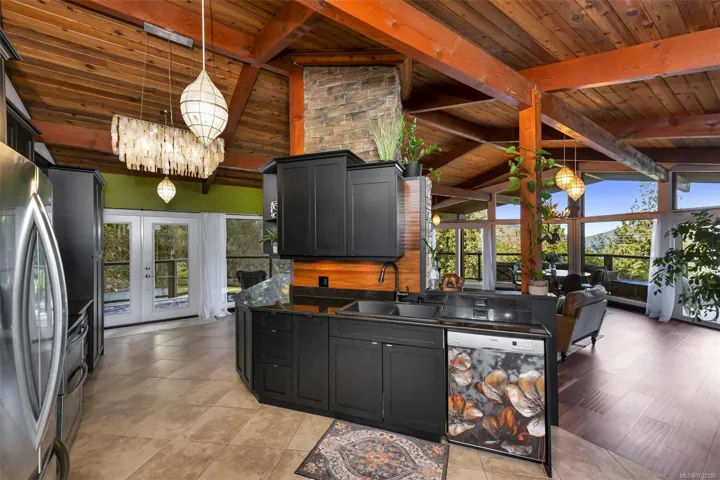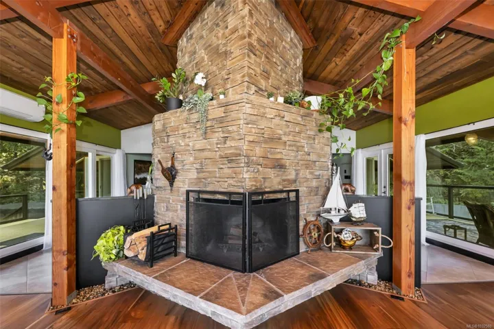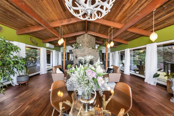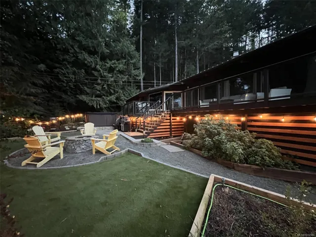 Nestled into the hillside on a private 0.62 acre lot across from, & with views of Maple Bay marina is this gorgeous 2800 sqft., 4 bedroom, 3 bathroom, West Coast home set up perfectly for entertaining with a new wet bar, over 1000 sqft. of deck space, a 12 person swim spa & a new patio area with firepit & quality artificial turf! The main level has beautiful wood beams, vaulted ceiling, new acacia wood flooring, solid fir doors throughout, beautiful stone fireplace, updated kitchen, updated lighting, fresh paint & impressive floor to ceiling windows in the living/dining area to take in your natural surroundings. Two bedrooms on the main level including the spacious primary with deck access, 5 pce ensuite & walk-in closet. Downstairs is a wonderful family room with new bar, 2 more bedrooms, a full bath, laundry room & garage access. Highlights include a heat pump, gated & fenced yard, lots of parking, small seasonal waterfall & a premier location for boaters & outdoor enthusiasts!
