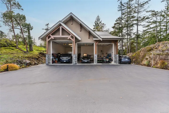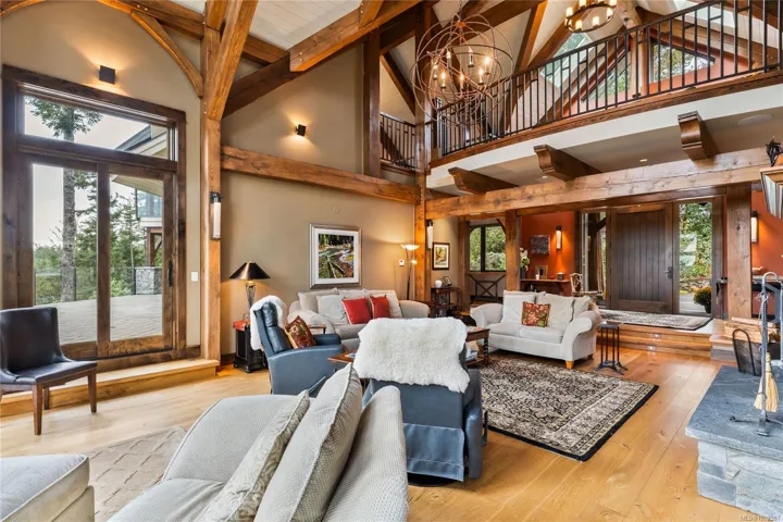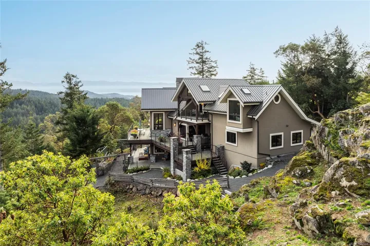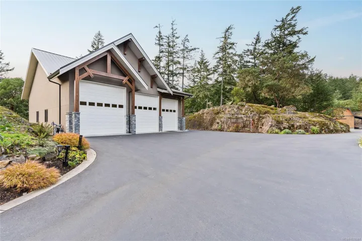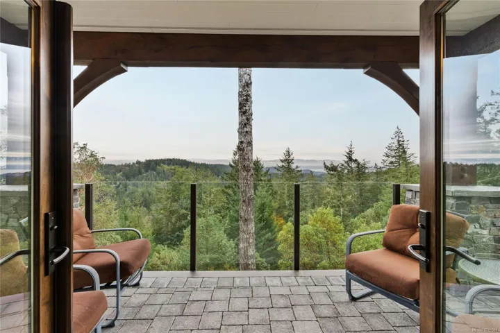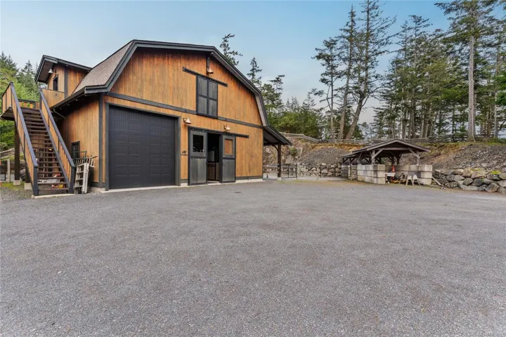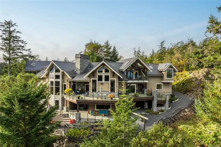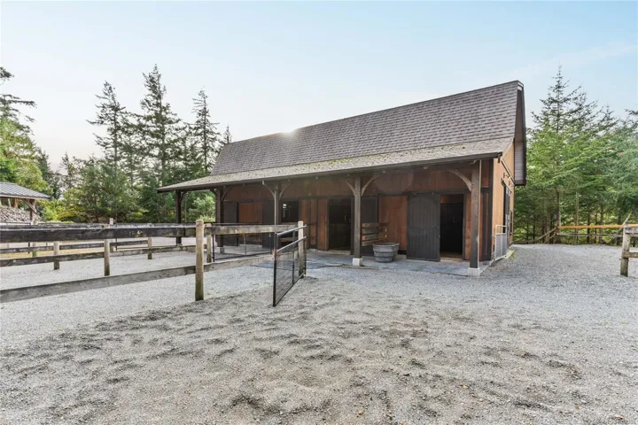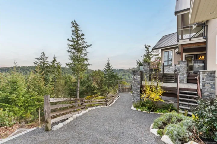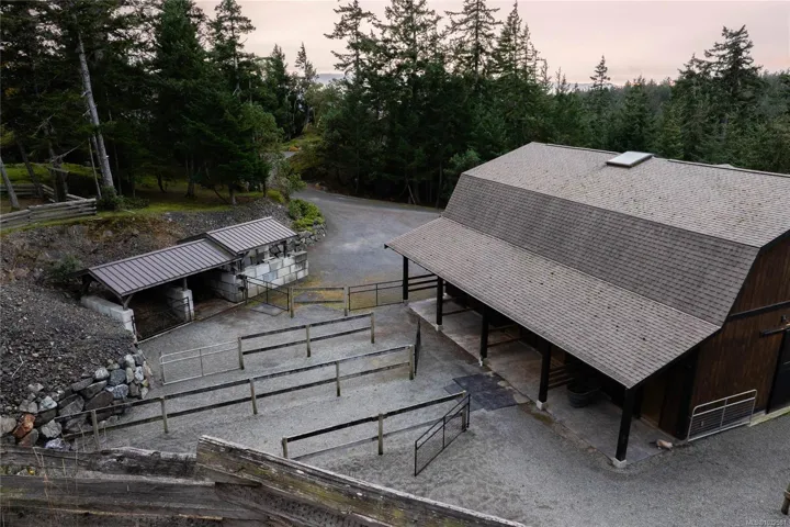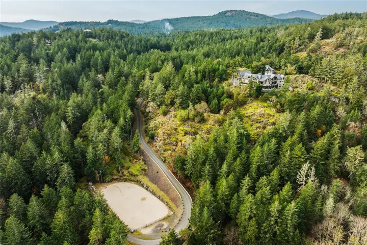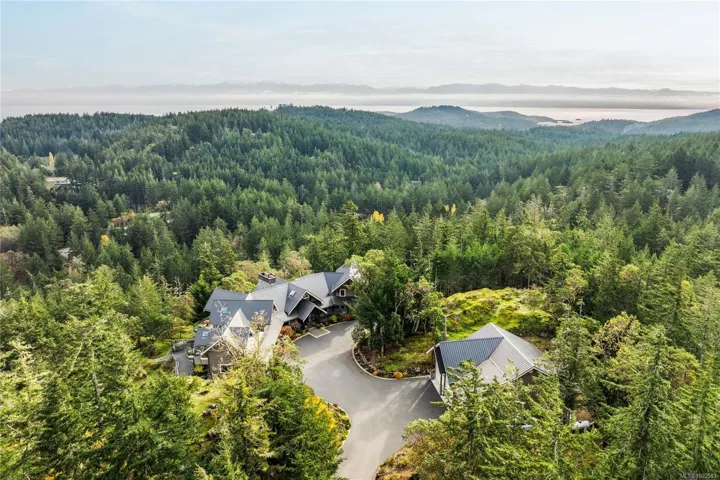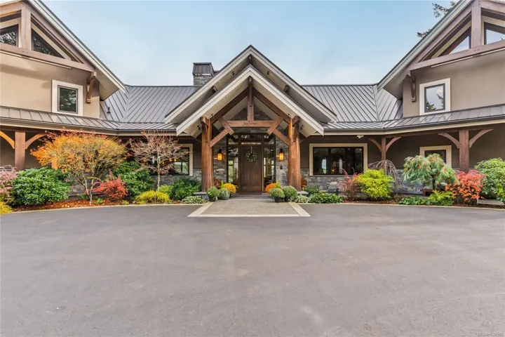 The finest country estate to grace the market in recent years. “ARDNAMARA” is a custom, oak timber frame home by Mike & Ryan Armstrong w/Riverbend Timber Framing & renowned Abstract Dev. Situated on 23.1ac (2 legal lots) of pristine forest, this stunning 7,606sf masterpiece boasts an interior by Jenny Martin Design, incorporating an abundance of natural materials & offering stunning views from downtown Victoria, over Juan de Fuca Strait to the Olympic Mtns. The interior embodies a grand living rm w/23ft ceiling, huge dining rm, gourmet kitchen, massive primary bedroom w/view balcony, walk-in closets & opulent 5pc ensuite, 2 more bedrooms both w/ensuites, office, media rm, bar/lounge, gym & wine rm w/tasting area. The gracious interior seamlessly opens to the outdoors & 3453sf of decking/patios. Dbl garage, detached 1,984sf 3 bay garage+shop. Equestrian ready w/1,734sf 4 stall barn w/hayloft, tack rm, paddocks & trails to surrounding parks & your own all weather riding ring. A rare find