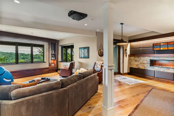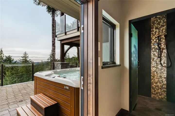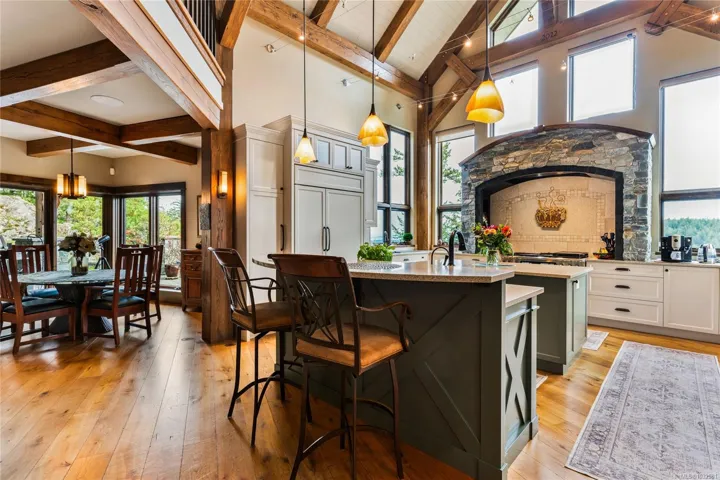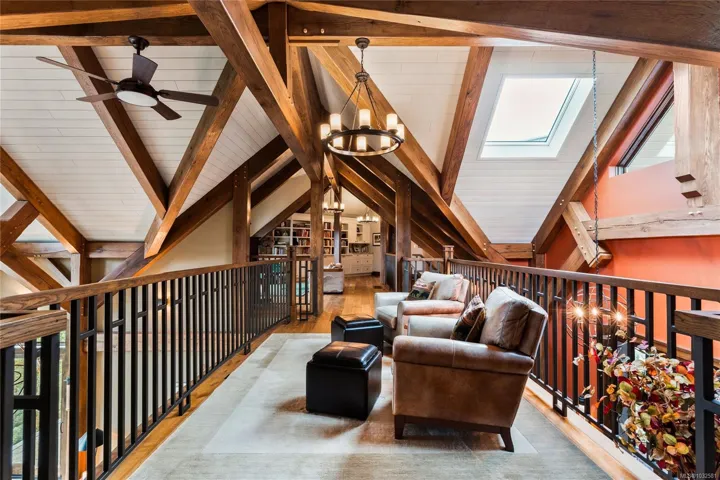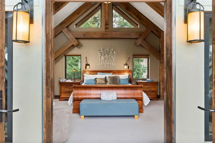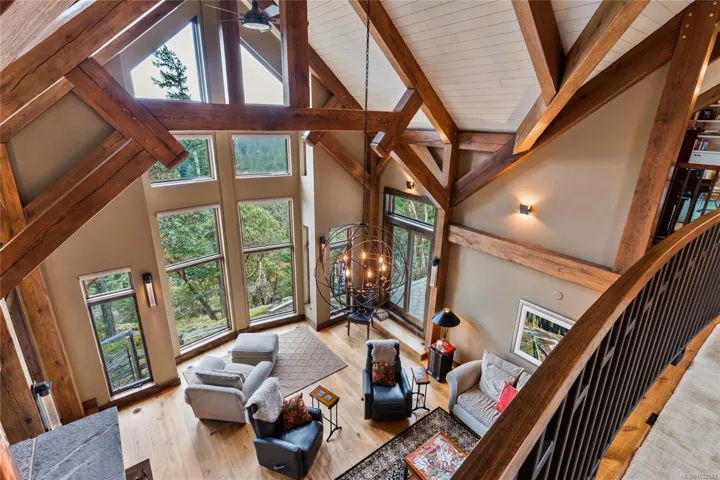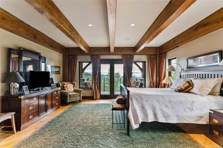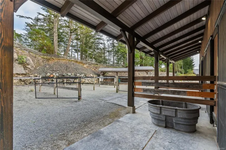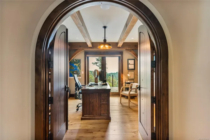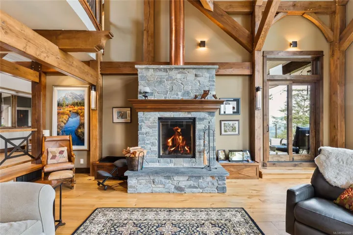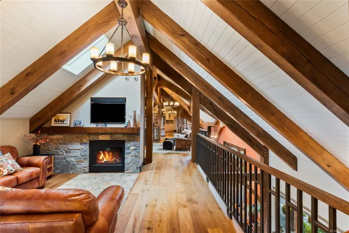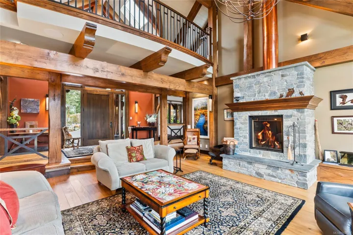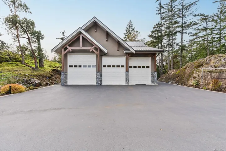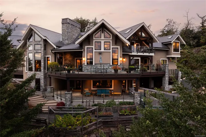 The finest country estate to grace the market in recent years. “ARDNAMARA” is a custom, oak timber frame home by Mike & Ryan Armstrong w/Riverbend Timber Framing & renowned Abstract Dev. Situated on 23.1ac (2 legal lots) of pristine forest, this stunning 7,606sf masterpiece boasts an interior by Jenny Martin Design, incorporating an abundance of natural materials & offering stunning views from downtown Victoria, over Juan de Fuca Strait to the Olympic Mtns. The interior embodies a grand living rm w/23ft ceiling, huge dining rm, gourmet kitchen, massive primary bedroom w/view balcony, walk-in closets & opulent 5pc ensuite, 2 more bedrooms both w/ensuites, office, media rm, bar/lounge, gym & wine rm w/tasting area. The gracious interior seamlessly opens to the outdoors & 3453sf of decking/patios. Dbl garage, detached 1,984sf 3 bay garage+shop. Equestrian ready w/1,734sf 4 stall barn w/hayloft, tack rm, paddocks & trails to surrounding parks & your own all weather riding ring. A rare find