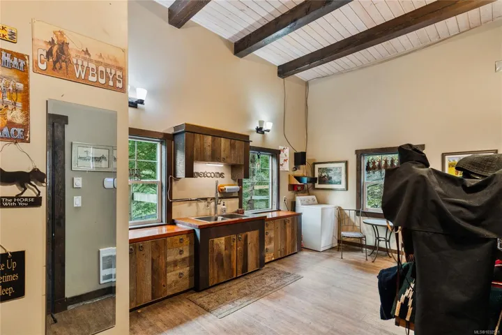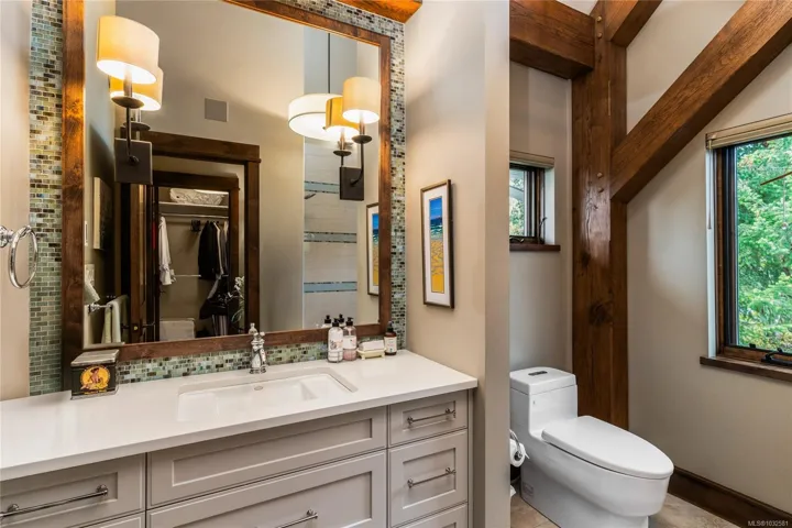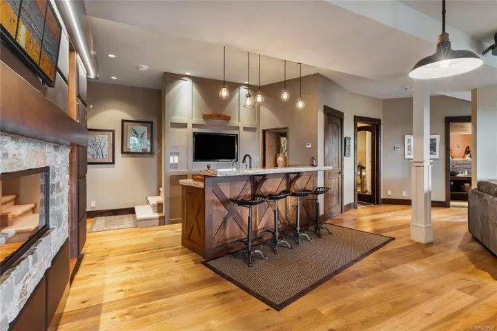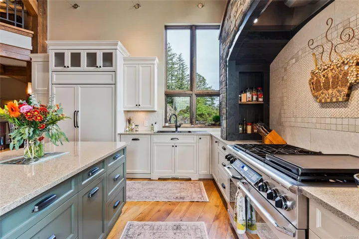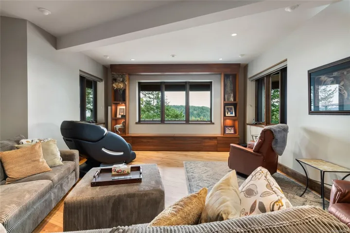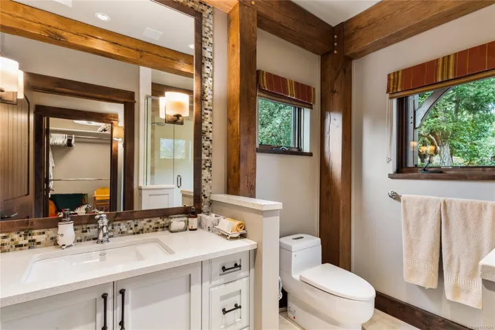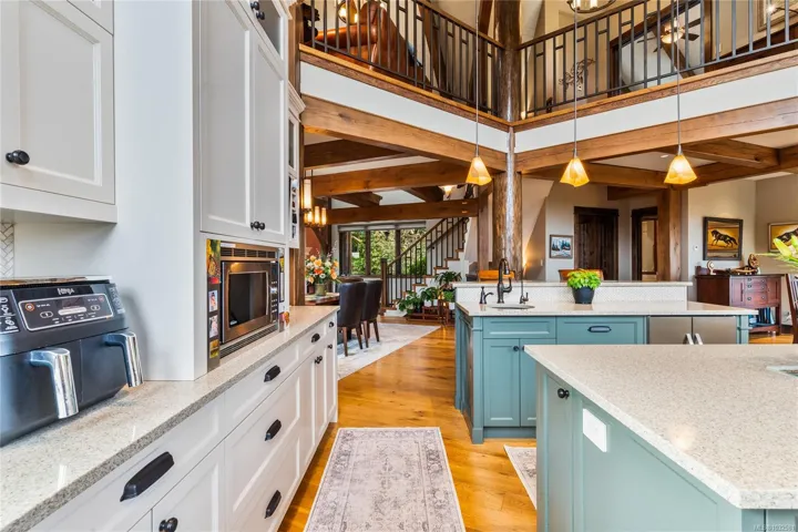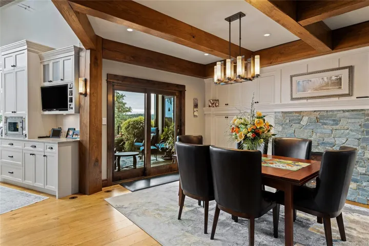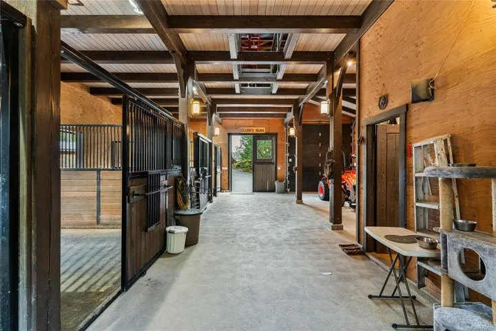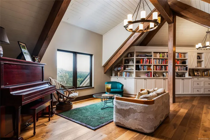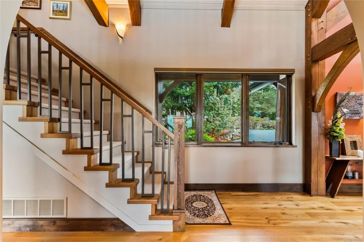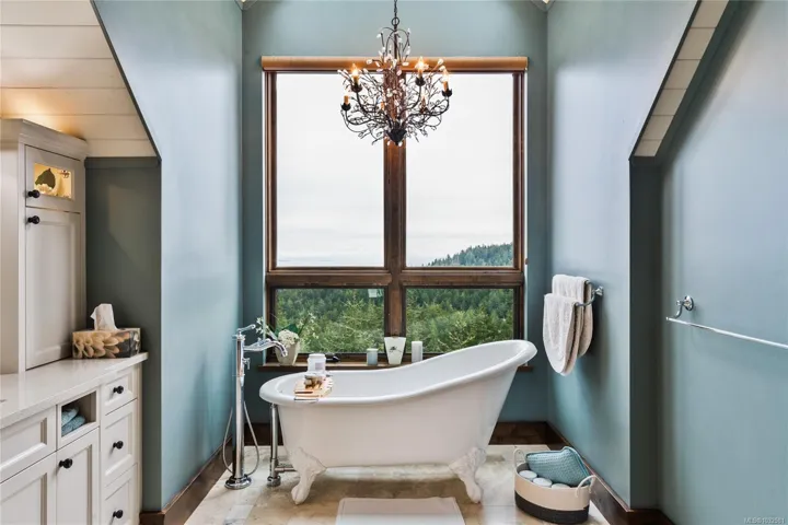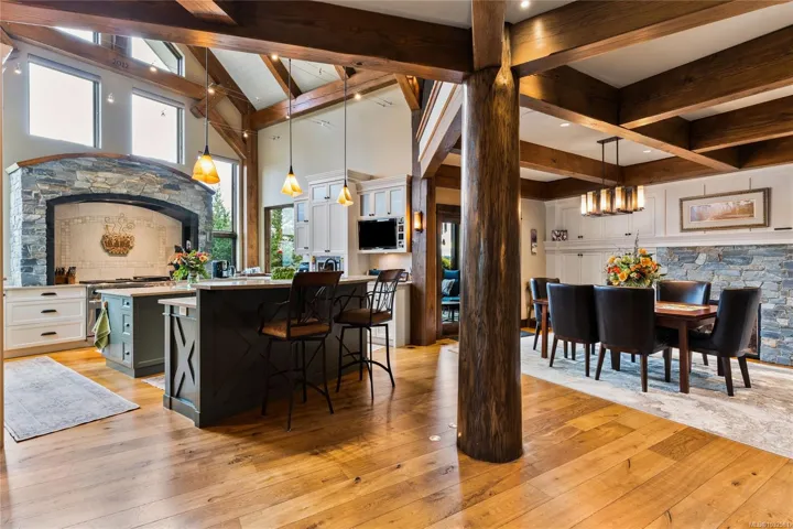 The finest country estate to grace the market in recent years. “ARDNAMARA” is a custom, oak timber frame home by Mike & Ryan Armstrong w/Riverbend Timber Framing & renowned Abstract Dev. Situated on 23.1ac (2 legal lots) of pristine forest, this stunning 7,606sf masterpiece boasts an interior by Jenny Martin Design, incorporating an abundance of natural materials & offering stunning views from downtown Victoria, over Juan de Fuca Strait to the Olympic Mtns. The interior embodies a grand living rm w/23ft ceiling, huge dining rm, gourmet kitchen, massive primary bedroom w/view balcony, walk-in closets & opulent 5pc ensuite, 2 more bedrooms both w/ensuites, office, media rm, bar/lounge, gym & wine rm w/tasting area. The gracious interior seamlessly opens to the outdoors & 3453sf of decking/patios. Dbl garage, detached 1,984sf 3 bay garage+shop. Equestrian ready w/1,734sf 4 stall barn w/hayloft, tack rm, paddocks & trails to surrounding parks & your own all weather riding ring. A rare find