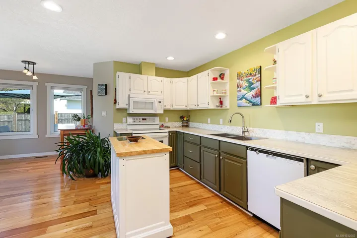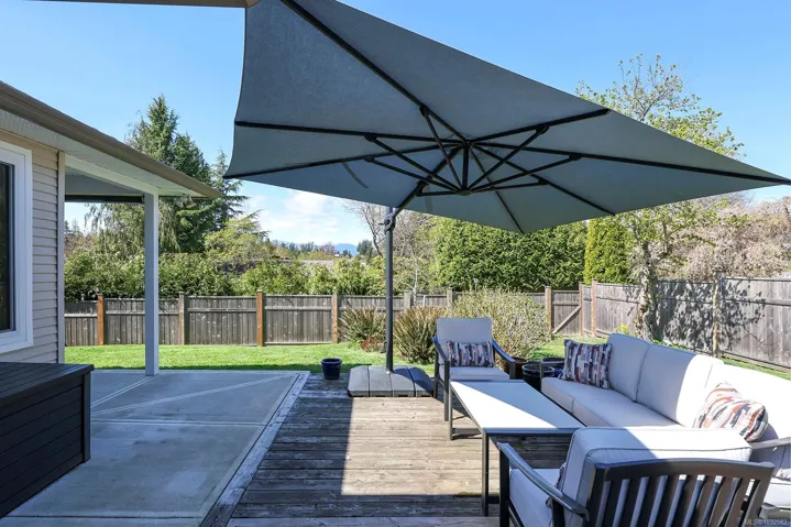 Well-kept three-bedroom, two bath rancher in a great Comox location, just minutes to shops, the marina, beaches, and trails. This home offers tons of natural light, a functional layout, and features hardwood throughout, updated windows, and a heat pump with air conditioning. The kitchen and breakfast nook open onto the deck where you can BBQ undercover and take in west-facing Beaufort Mountain views. The living room is a great central space with a gas fireplace, and the primary bedroom is in the back of the home and features an ensuite with a tiled shower. There are two additional bedrooms and a practical laundry room with storage and laundry sink. The double garage with workbench and crawl space access presents excellent storage options, and outside offers a sunny garden area, RV parking, and easy access through a double gate to the backyard. This is a wonderful rancher in a convenient location.