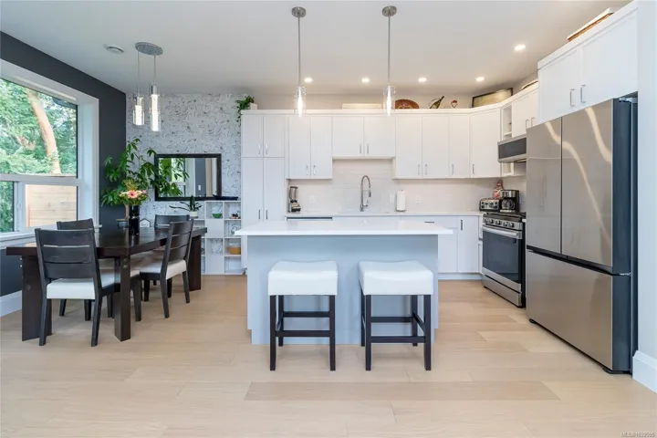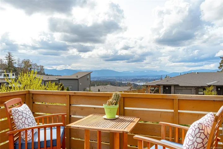 Shows like new! Cozy end unit, with lake and mountain views, in the quiet community of Altair located in Maple Bay. No GST. Turn key, 2-5-10 Warranty remaining. Main level living with easy access parking. Room for 2 vehicles in driveway & 1 in garage. Sunny & extra spacious front patio with sunsets. Super private, covered rear balcony backing onto the tree covenant area, adorn with a skylight. 2 bedrooms plus office/den, 2 full bathrooms. Engineered hardwood, tile, heated ensuite floor, heat pump + forced air natural gas furnace, quartz counters, natural gas on demand hot water, gas BBQ hookup. Upgrades by owner: Painting, window blinds/electric blinds, Level 2 EV plug, Built-in storage in garage, Custom kitchen pantry added and upgraded lighting. This location is unbeatable, walking right out the path to popular hiking/biking trails on Mount Tzouhalem. 3 min drive to Maple Bay Beach, Eateries, Coffee shop and a short drive to all the amazing amenities that Duncan has to offer!