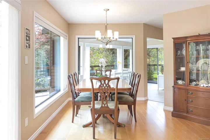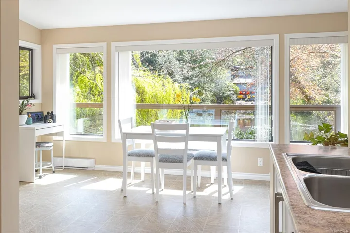 On Golden Pond! Welcome to this beautifully updated end-unit townhome in sought-after Eagle Ridge Estates. Impeccably maintained and tucked within a secure, pet-friendly gated community, this peaceful 75-acre North Saanich enclave offers easy, low-maintenance, lock-and-leave living. Enjoy scenic walking trails and a tranquil pond teeming with wildlife just steps from your balcony. Designed for main-level living, the home features a spacious primary suite with walk-in closet and spa-inspired ensuite. Updated kitchens and bathrooms add to the appeal of this luxurious residence. Vaulted ceilings, large windows, and a cozy gas fireplace enhance the bright open-concept living space. Relax on the expansive south-facing deck or in the sunroom with serene pond views. Upstairs offers a guest bedroom, full bath, and flexible den or office space. Complete with heat pump, double garage, RV parking (on a waitlist basis), and a prime location near beaches, marinas, ferries, the airport and Sidney.