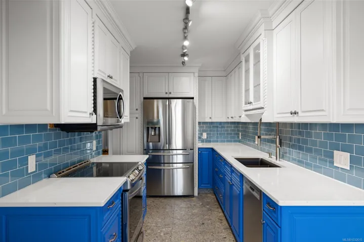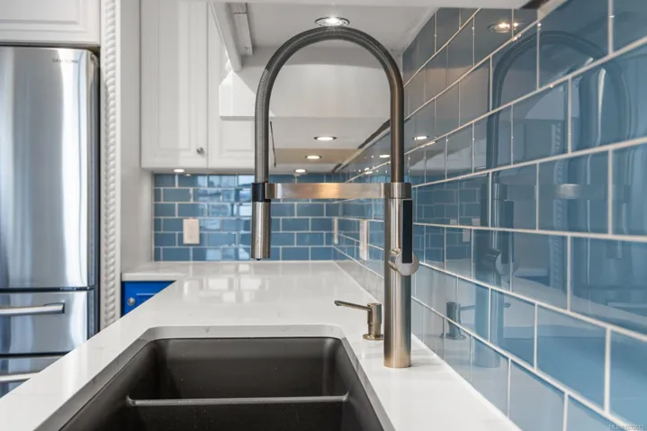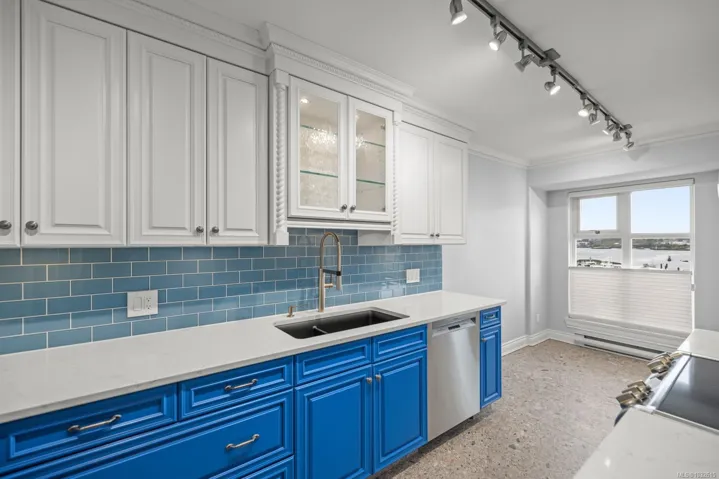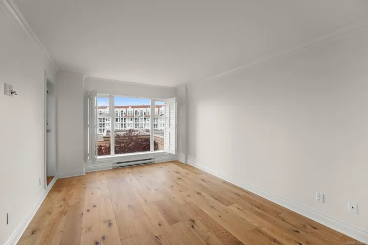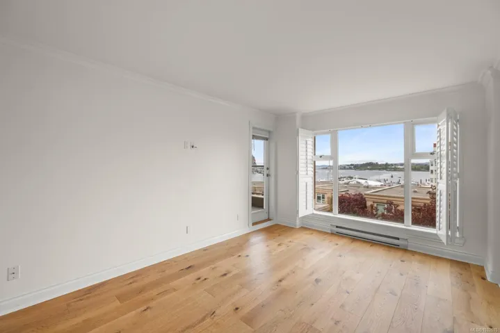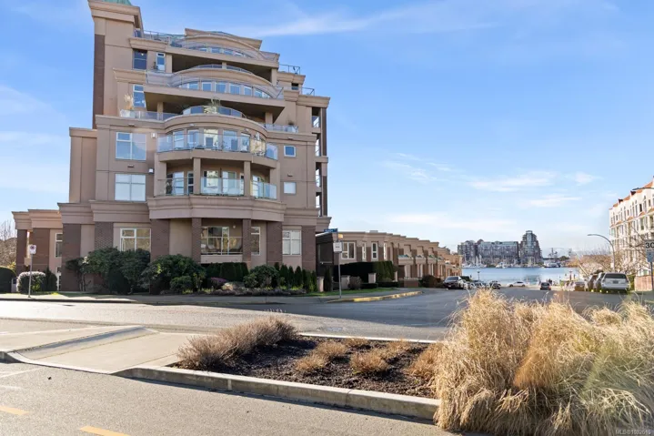 Positioned in the sought-after Songhees waterfront community, this south-facing residence delivers harbour views, excellent natural light, and true walkable living — From the terrace and main living areas, enjoy the steady movement of boats, kayaks, and seaplanes that make this location uniquely Victoria.Steps from the Songhees Walkway, you’re connected to waterfront paths, marinas, parks, and some of the city’s best dining — all within minutes. Offering just under 1,440 sq. ft., this fully remodelled home features 2 bedrooms, 2 bathrooms, and a den, plus a generous terrace. The interior showcases newer hardwood flooring, crown moulding, and exceptional storage. The kitchen is finished with terrazzo tile and stone countertops, while a gas fireplace adds warmth to the main living space. The spacious primary suite includes a recently renovated ensuite completed with luxury finishes and craftsmanship. A well-appointed harbour front home in one of Victoria’s most established communities
