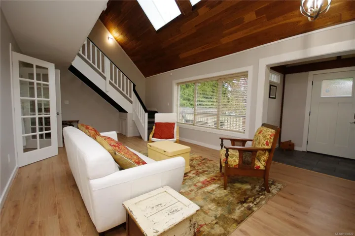 Experience this tastefully updated 3 bedroom plus den home, perfectly situated on lush half -acre property minutes from downtown Qualicum Beach. A renovated front entry welcomes you into an airy open concept floor plan characterized by vaulted cedar ceilings and a floor to ceiling slate rock fireplace. Fresh paint and uopdated flooring , modernized kitchen and bathrooms. New how watertank , skylights , new flooring in the 2nd floor bedrooms. Outside the parklike grounds feature a peaceful pond and wrap around deck for quiet enjoyment. With an oversized garage and a privat 1 bedroom in law suite, this property offers incredible versatility and charm. Located minutes from the Little Qualicum Estuary as well. Be sure to come and take a peak!