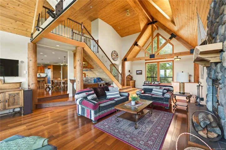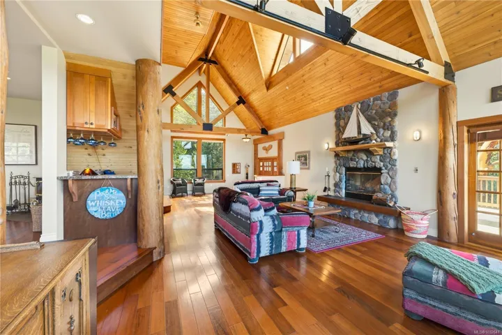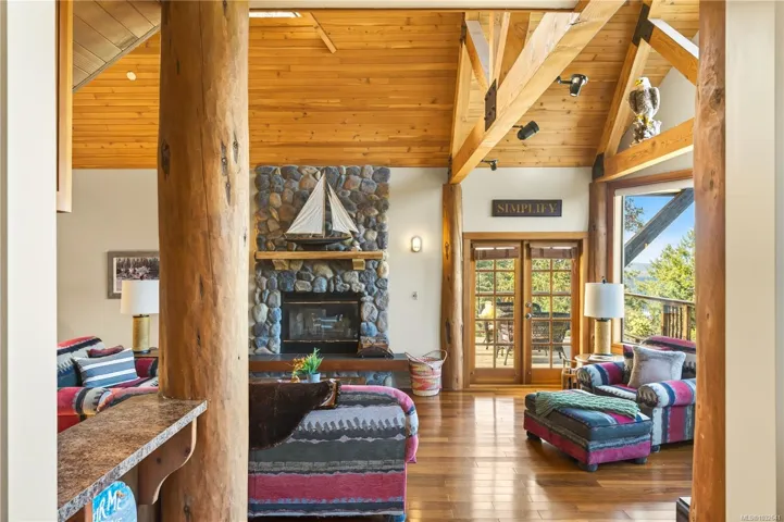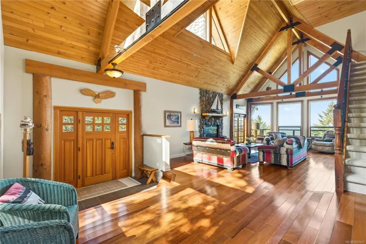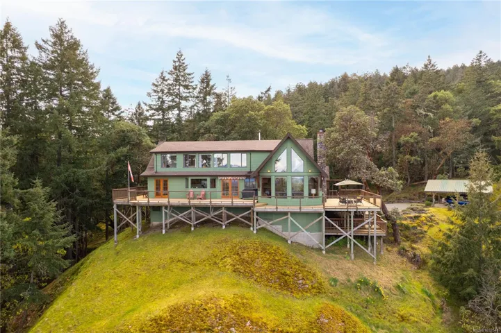 An extraordinary 8.5ac oceanview estate on Salt Spring Island where enduring craftsmanship meets refined West Coast luxury. Built as a legacy property, this timber-framed residence—crafted from trees harvested on site—offers soaring ceilings and a sense of quiet strength. The 3BR/4BA layout features a serene primary retreat, heated tile floors, and light-filled spaces capturing sweeping harbour views toward Vancouver with prime sun exposure. This is the realization of a master mechanic’s vision, designed for a self-reliant lifestyle w/ 2 high-bay garages w/ mezzanine, engine hoist, plumbed compressors, a 1400sf wired shop, and 2100sf powered barn. Infrastructure includes a backup generator and dual wells, catering to those who prioritize practicality and long-term stability. Set on a quiet cul-de-sac mins to Ganges w/ future oceanview build potential, this compound is built to a higher standard for a life of comfort and independence.