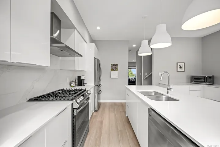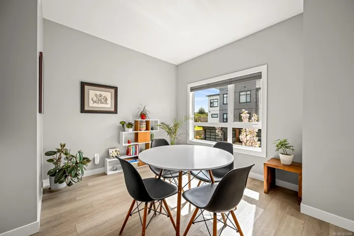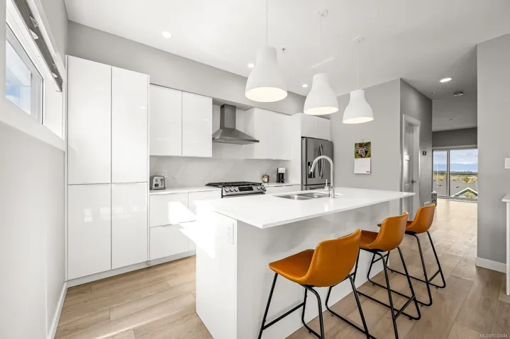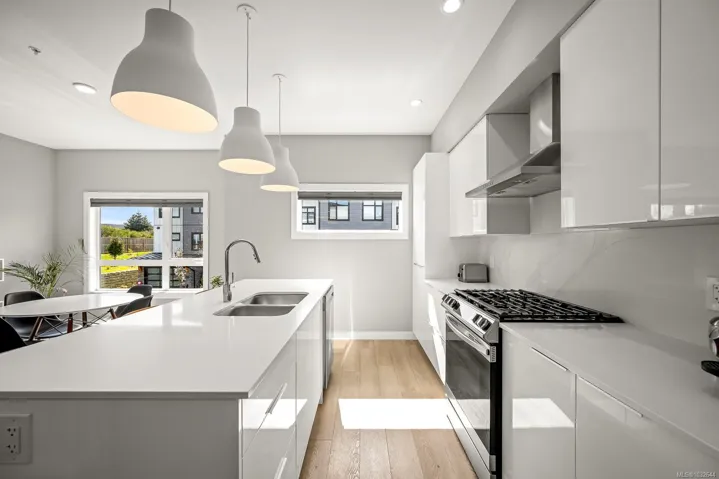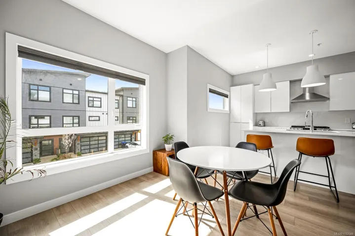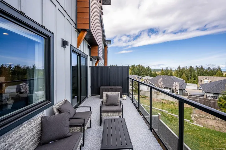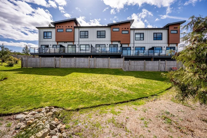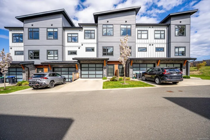 Prime end-unit townhouse with ocean and mountain views! Built in 2020, this modern, clean home offers 2,176 sq ft over three levels with 3 bedrooms and 4 bathrooms – ideal for family living. This home has a fantastic layout with bedrooms upstairs, the kitchen and large living area on the main floor plus a separate family room on the lower level, allowing lots of room for everyone! Featuring quartz countertops, stainless appliances with a gas stove, extra cabinetry in the kitchen, heated tile bathroom floors, and impressive 9′ and 10′ ceilings throughout. Enjoy high-efficiency gas furnace heating, air conditioning, hot water on demand, and a natural gas BBQ hookup on the deck. Relax on the main floor deck with the views or unwind in the lower fenced patio – perfect for pets or gardening. Pet-friendly with up to 2 cats or 2 dogs, no size restriction. Conveniently located within walking distance to shopping, Costco, the hospital, and NIC, plus a quick drive to CFB Comox.