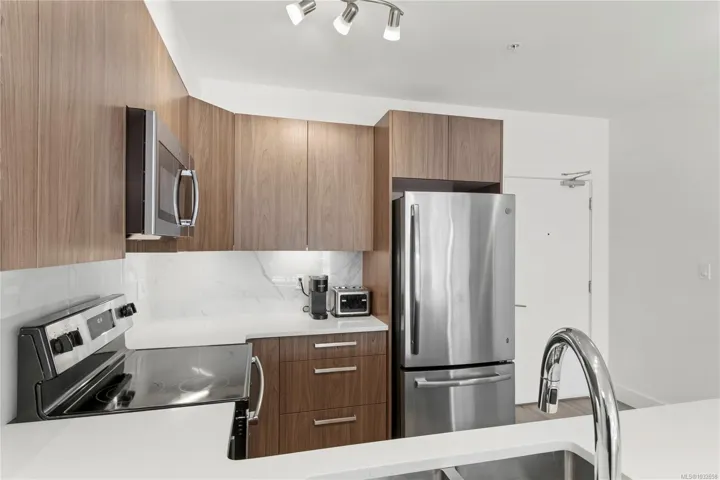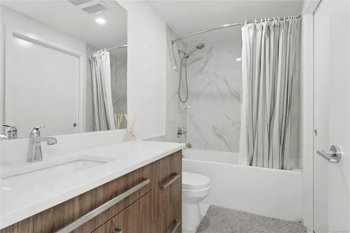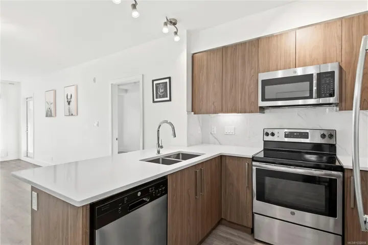 Welcome to Newport Village! This 2019 built 2-bedroom, 2-bathroom unit is 969 sq ft and is centrally located. The floor plan offers excellent separation with a bedroom and primary ensuite with a walk-in closet on opposite sides of the condo for peace and privacy. Did I mention Ocean views! The open-concept kitchen, dining, and living room maximize space and allows natural light to pour in for all those sunseekers. Complete with quartz countertops, tile backsplash, stainless steel appliances, in-suite laundry with storage room, and secured underground parking; this unit will not disappoint. Don’t miss out on this incredible opportunity! Come and experience the unique luxury of this fantastic apartment and all the conveniences offered by the Comox Valley.