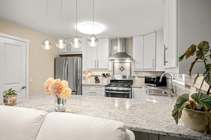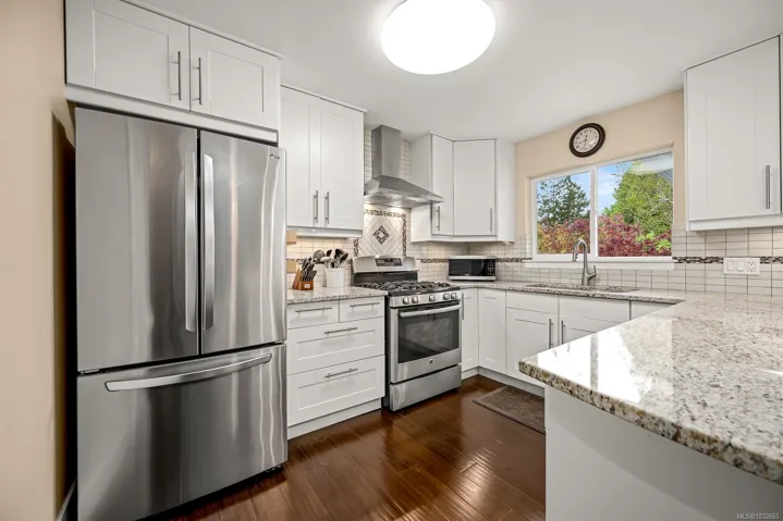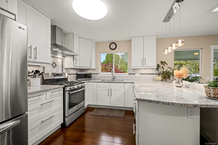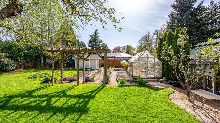 A RARE PROPERTY! Beautifully updated home with bright suite with a PARK-LIKE PARADISE backyard on a 0.23 acre lot! This move-in ready home has many newer items (see list) and features 2 fireplaces, wood floors, skylight, 3 bath, 2/3 bed PLUS a 1 bed, 1 bath suite with its own entrance, hydro meter, electrical panel, laundry—ideal for family, in-laws, teens, or a mortgage helper. Easy to convert to one large home with interior door. Enjoy the spa-like ensuite in the primary bedroom with newer extra long soaker tub and rain shower. Hobby room with storage and sink for projects or brewing. Spacious covered patio has newer roof and outdoor kitchen with sink—perfect for entertaining! Gorgeous Old Orchard apple tree, other fruit trees, garden beds, herbs, berries (see list). Fenced backyard with lush grass for all to enjoy! Large greenhouse, spacious shed, irrigation, handy gated alley access. All of this in a quiet, yet super convenient location—steps to shops, restaurants, more! Book NOW!