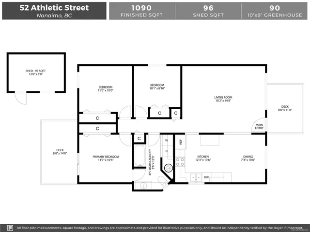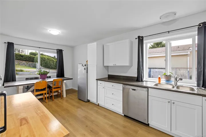 Tastefully updated three-bedroom rancher tucked away on a quiet no-through street in a convenient location. This bright and functional home offers an inviting layout with a spacious living room, adjoining dining area, and a well-appointed kitchen. Recent updates include flooring, appliances, and mostly newer windows, providing move-in ready comfort. A ductless heat pump ensures efficient year-round heating and cooling. Step outside to a fully fenced yard—perfect for kids, pets, and entertaining—complete with a back deck for relaxing or hosting. Garden enthusiasts will appreciate raised beds both in the yard and within the greenhouse, along with fruit trees including apple, peach, and cherry. Additional highlights include RV parking with a 30-amp hookup, lane access, a wired shed, and a separate storage shed. Ideally located near parks, schools, shopping, downtown, and VIU. All data and measurements are approximate and must be verified if fundamental.