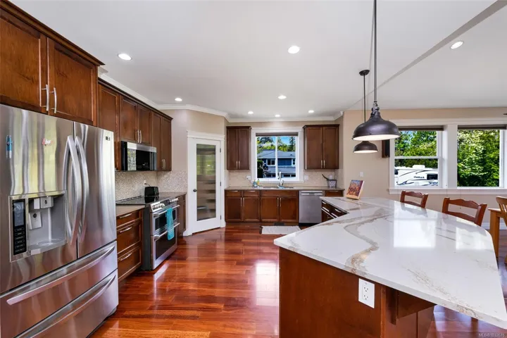 Located in Sentinel Ridge, this beautifully maintained/updated 3 bed + den, 3 bath, 3126sq. ft. home is sure to please. Age in place with the spacious main level primary bedroom which will accommodate over-sized furniture & has a luxurious 5-piece ensuite with updated shower. You will love the elegant formal dining room with exquisite ceiling detail, den/office, large great room with vaulted ceiling, NG fireplace, over-sized windows, engineered wood flooring with access to the rear yard. The kitchen features hard surface counters, newer appliances, large eat at island & separate coffee bar. Upper level is perfect for guests with 2 bedrooms, flex area, & full bath. Bonuses include: Heat pump, on-demand hot water & the over-height, exterior entrance crawlspace that is usable for workshop/storage. Outside is a fenced & gated rear yard, mature gardens, drip irrigation & garden shed. Comfort and versatility throughout, close to the ocean, all amenities & a short commute to Victoria!