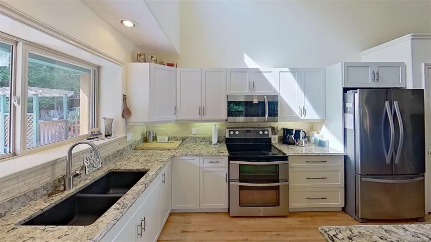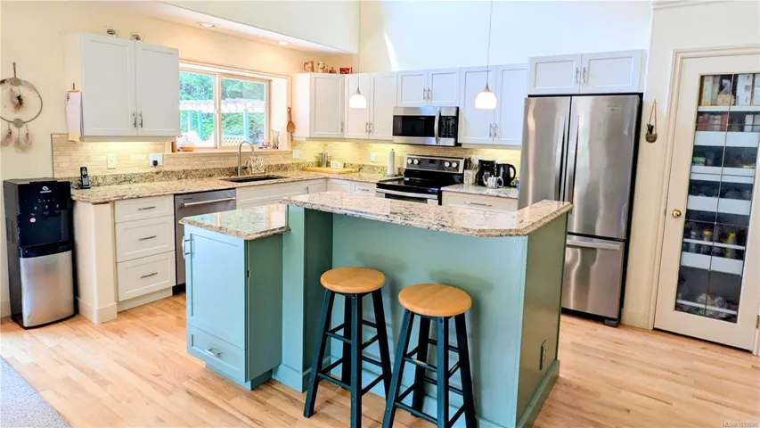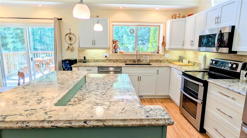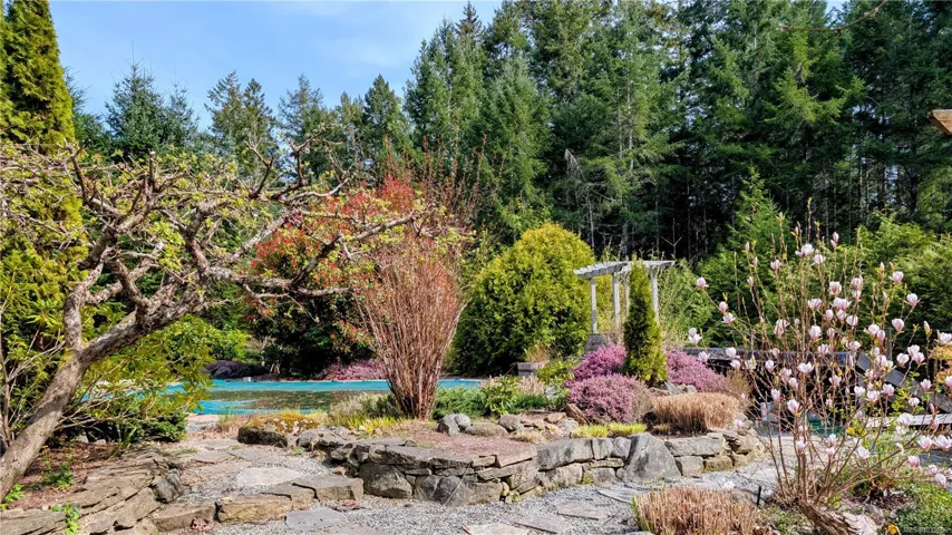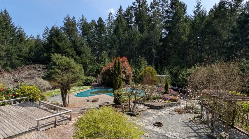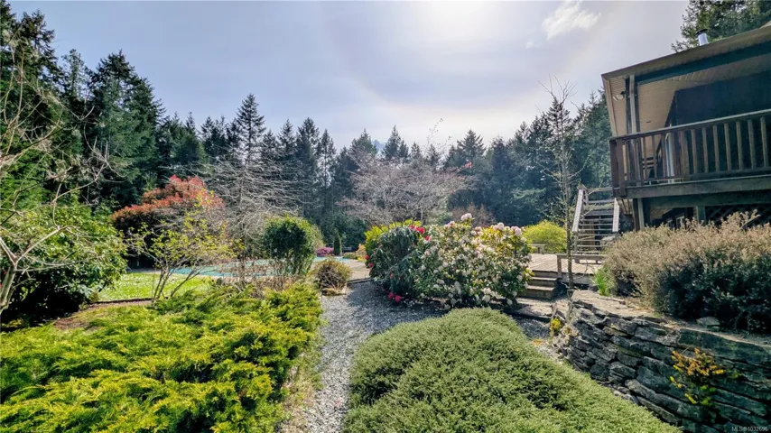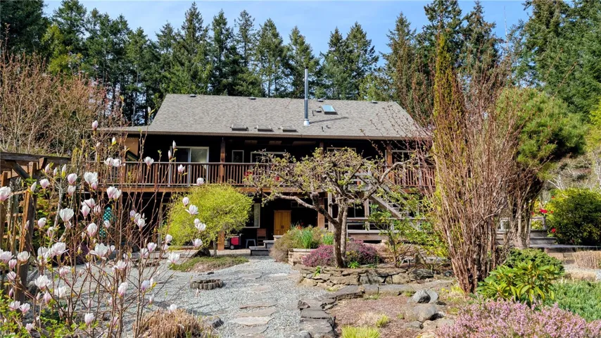Secluded and sun-filled, this private 5-acre property offers a 3-bedroom, 3-bathroom home in a central location. A gently sloping driveway leads to a cleared setting with mature landscaping and all-day sun. A circular drive welcomes you to this two-level home with a walkout basement, wraparound veranda, and multiple decks for sun or shade. The main level features an open-concept living, kitchen, and dining area with vaulted ceilings, large windows, and sliding glass doors for abundant natural light. The kitchen includes newer cabinetry, granite countertops, and stainless steel appliances. The primary bedroom has a 3-piece ensuite and deck access. The fully finished walkout basement offers flexible space for a studio, family room, or guests, plus a 3-piece bath. Enjoy peaceful garden paths leading to a private in-ground heated pool. A double carport with workshop and tractor shed adds storage and workspace. A rare offering not to be missed.