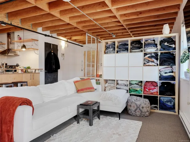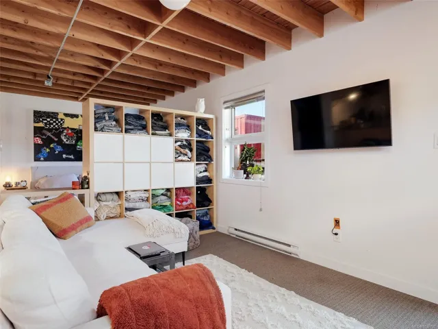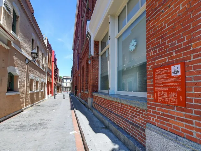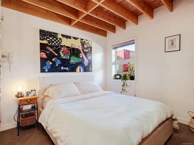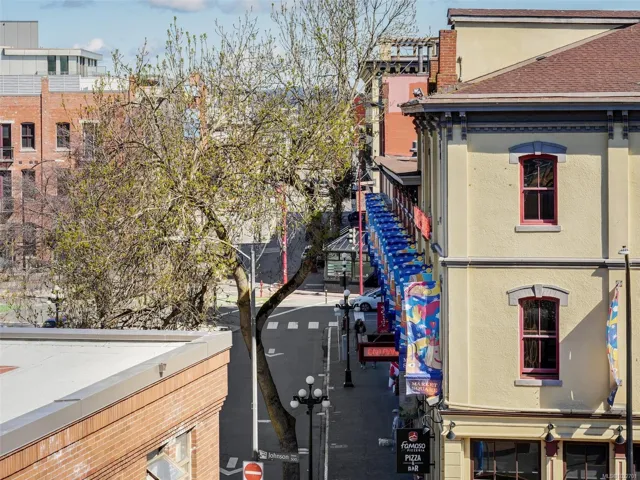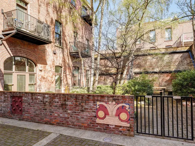 Top floor studio in the iconic Morley Soda Factory, an architecturally significant heritage building in the heart of Old Town Victoria. Built in 1875 and restored in 2009, this boutique 9-unit building blends historic charm with modern living. This 560 sq ft loft-style suite features exposed wood beam ceilings, windows on three sides, and a skylight that fills the space with natural light. Open-concept layout offers flexible living and sleeping areas, plus a full kitchen, in-suite laundry, and storage. Private balcony with views of Old Town and the mountains. Zoned OTD-1 (Live/Work) and pet friendly, with a landscaped common courtyard. Steps to the Inner Harbour, restaurants, shops, and Chinatown. Walk Score 99. Listed nearly $70k below assessed value. A rare opportunity to own a piece of Victoria history in a creative live/work community, surrounded by cafés, galleries, waterfront paths and the charm of the city’s historic commercial district.