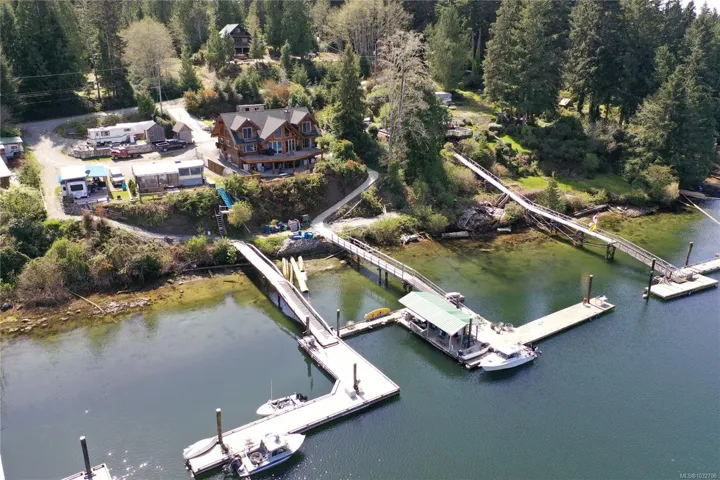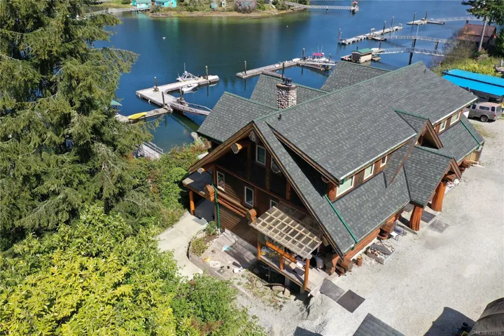 Escape to your own spectacular waterfront retreat nestled in the serene beauty of Bamfield’s Grappler Inlet. This magnificent 4,200 sq/ft log home sits on a 1/3-acre lot, offering protected moorage and instant access to world-class ocean adventures, paired with the peaceful charm of coastal living.