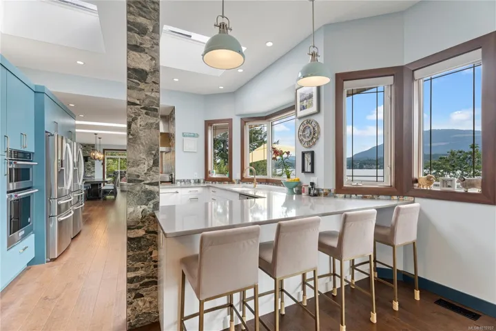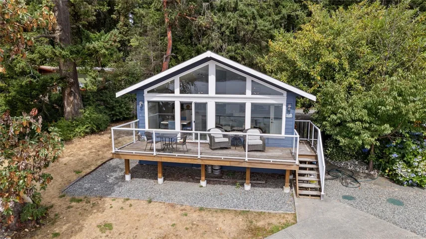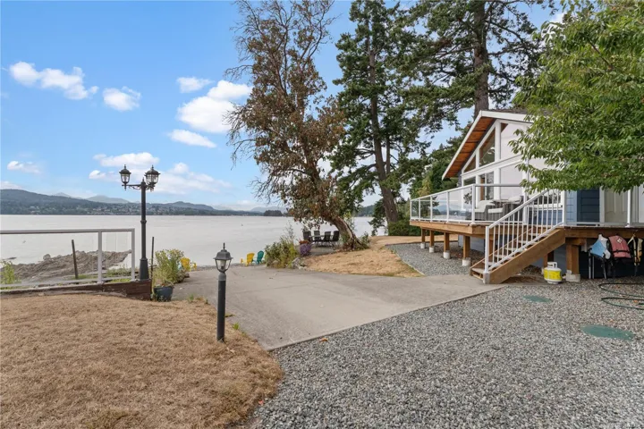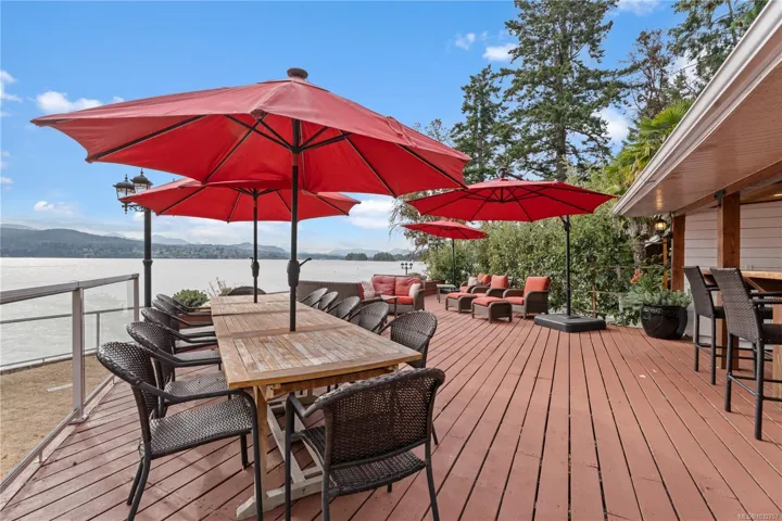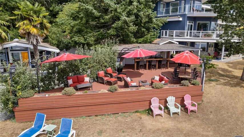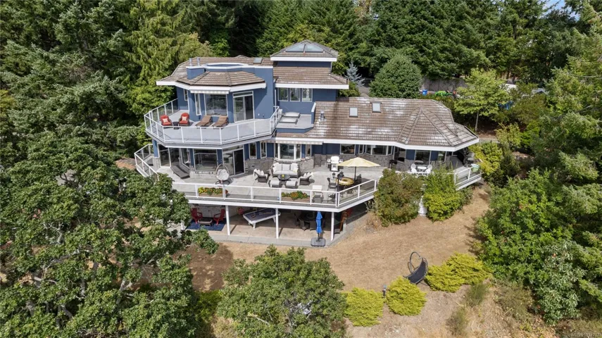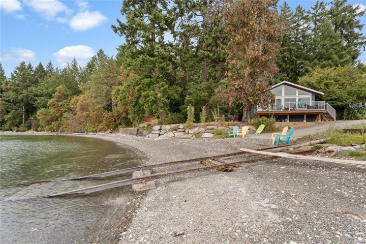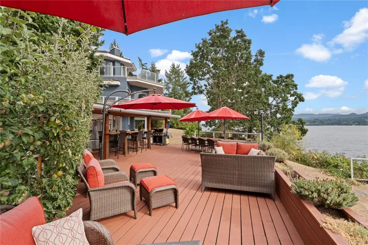 Spectacular walk-on waterfront estate in Ladysmith! This gated 1-acre property offers 280 feet of low-bank oceanfront with stunning west-facing views. The fully renovated 4,950 sq.ft. main home features a luxurious primary suite occupying the entire upper floor with dual ensuites, walk-in closets, coffee bar, and private deck. The main level includes a chef’s kitchen with twin fridges, gas range, a spacious dining area, two guest bedrooms with ensuites, and a dedicated office. The great room boasts a gas fireplace and wet bar with taps. Downstairs you’ll find a wine cellar, British-style pub, and private guest suite. An elevator shaft is in place for future access. Outdoors, enjoy four levels of decks, an outdoor kitchen and bar, a concrete boat launch, and a sandy beach. Two fully self-contained oceanfront cottages provide guest accommodations. A rare opportunity to own a legacy property where luxury meets coastal living.
