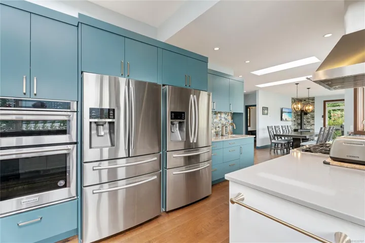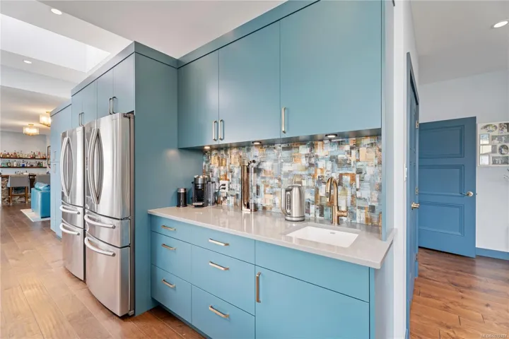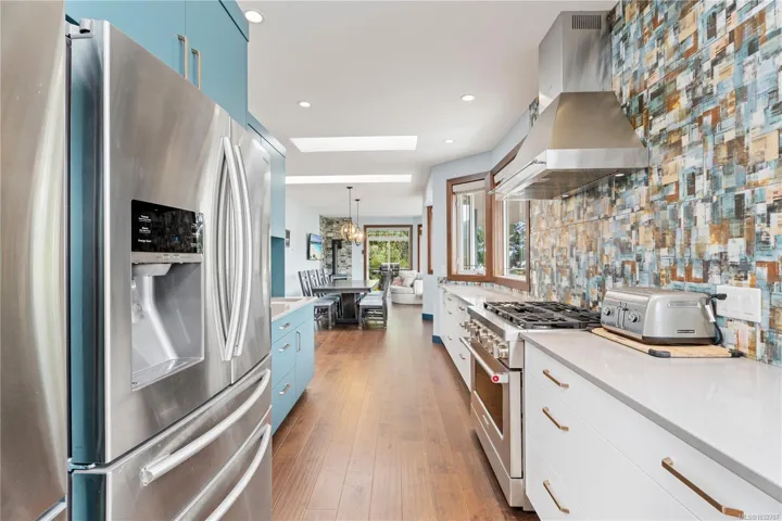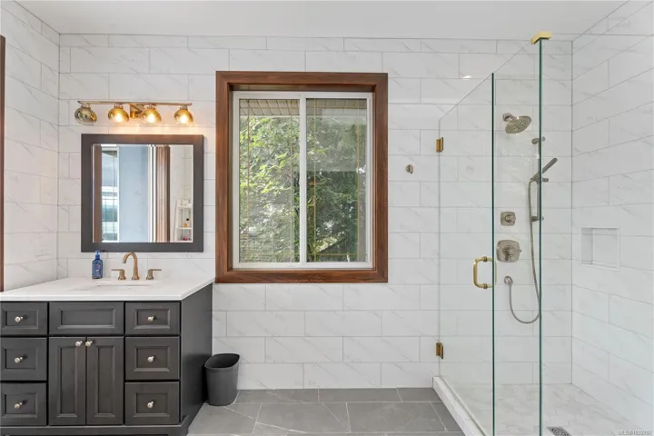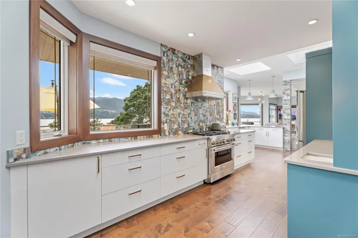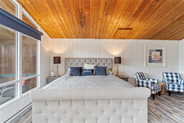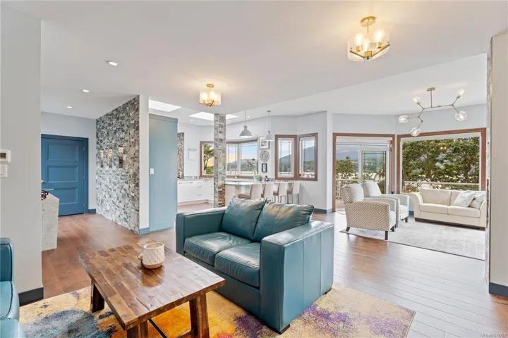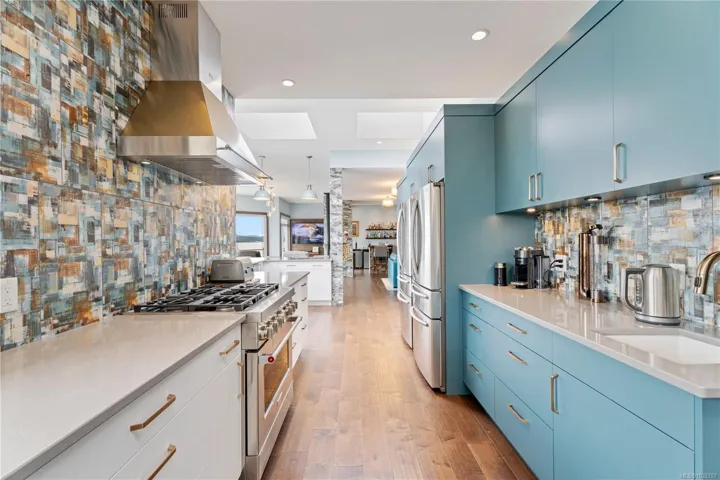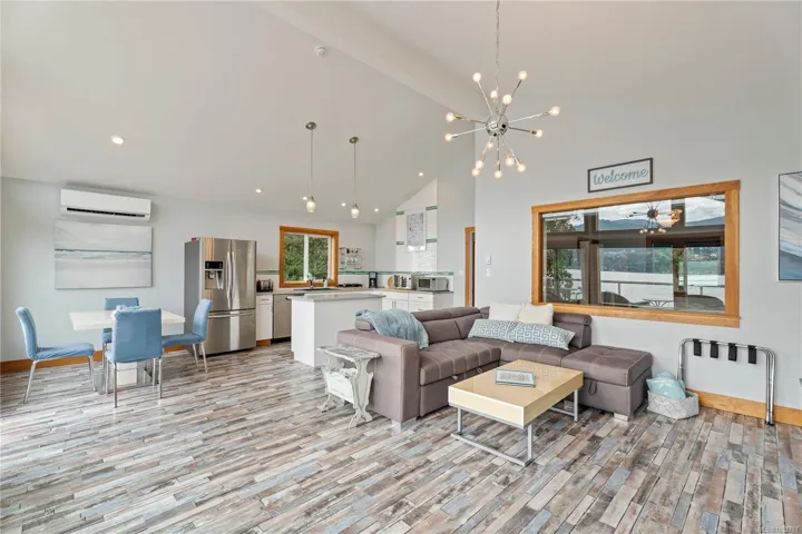 Spectacular walk-on waterfront estate in Ladysmith! This gated 1-acre property offers 280 feet of low-bank oceanfront with stunning west-facing views. The fully renovated 4,950 sq.ft. main home features a luxurious primary suite occupying the entire upper floor with dual ensuites, walk-in closets, coffee bar, and private deck. The main level includes a chef’s kitchen with twin fridges, gas range, a spacious dining area, two guest bedrooms with ensuites, and a dedicated office. The great room boasts a gas fireplace and wet bar with taps. Downstairs you’ll find a wine cellar, British-style pub, and private guest suite. An elevator shaft is in place for future access. Outdoors, enjoy four levels of decks, an outdoor kitchen and bar, a concrete boat launch, and a sandy beach. Two fully self-contained oceanfront cottages provide guest accommodations. A rare opportunity to own a legacy property where luxury meets coastal living.