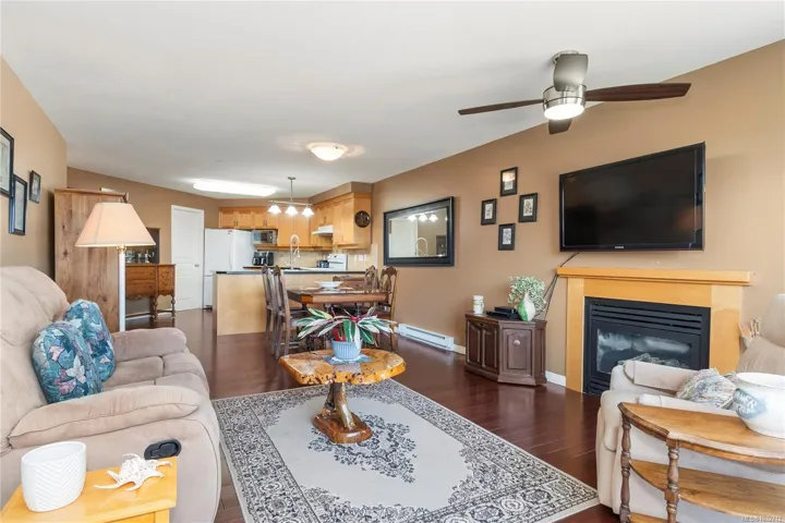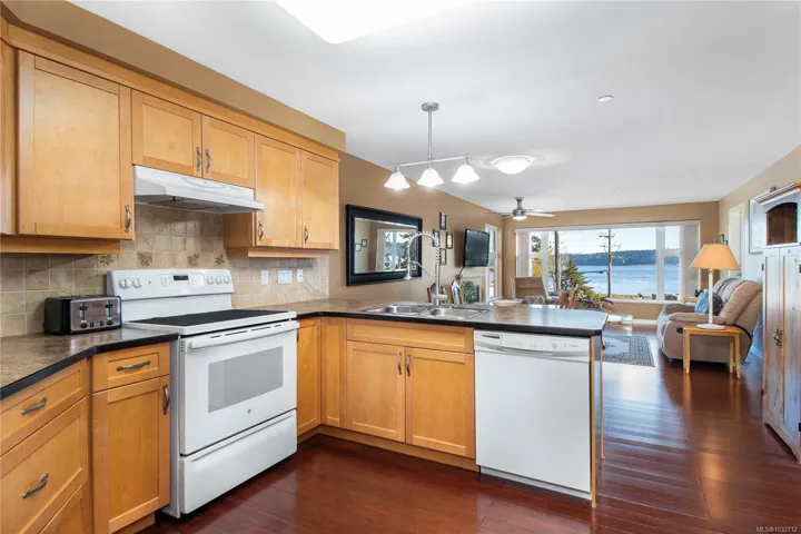You will find that view perfectly framed on the covered balcony/deck and from almost every room. Inside the space opens up into a seamless kitchen, dining, and living area designed to feel expansive without losing its sense of comfort. A gas fireplace anchors the living room and the patio door leads to a large covered balcony that extends your living space outdoors, also accessed from the primary bedroom. The layout offers 2 bedrooms, a den, and 2 bathrooms, including a primary suite with a walk-in closet and an ensuite with double vanities and a walk-in shower. In-unit laundry, underground parking, and secure storage complete the package. It’s a home that stands out for its space, its views from most every room and its unbeatable location by the water.
