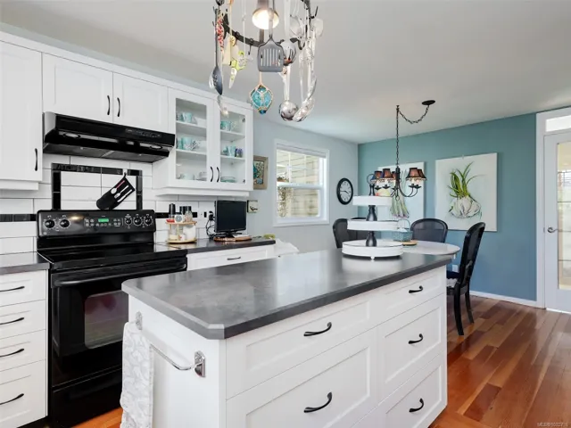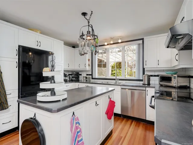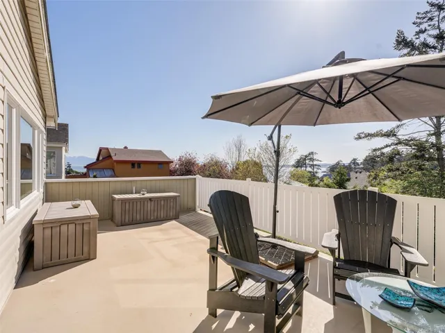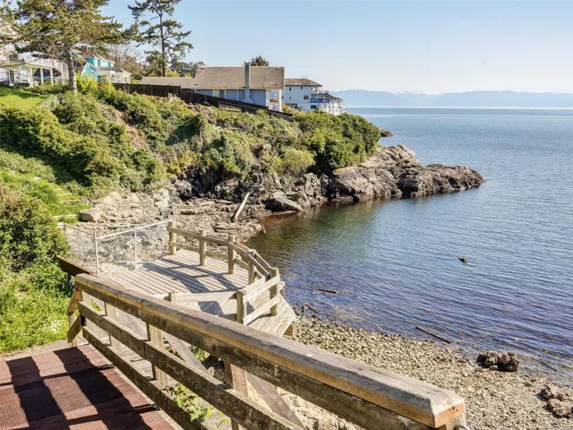 Beautiful Saxe Point home with ocean views. Features include large bright living room with a spacious deck, gorgeous kitchen with dining area, original gleaming hardwood floors throughout the upper level and two large bedrooms and two bathrooms. More living space downstairs ideal for a hobby room, kids’ playroom or a home business. This level leads to an easy-care landscaped back yard with mature trees and shrubs. A bonus is the backyard studio perfect for relaxation, yoga etc. Superb location on a quiet cul de sac, steps to the ocean. Close to schools, shopping and a short drive to Downtown Victoria and the Inner Harbour. This property has been lovingly cared for by the current owners and is in move-in ready condition. This is truly a rare find and it won’t last long!