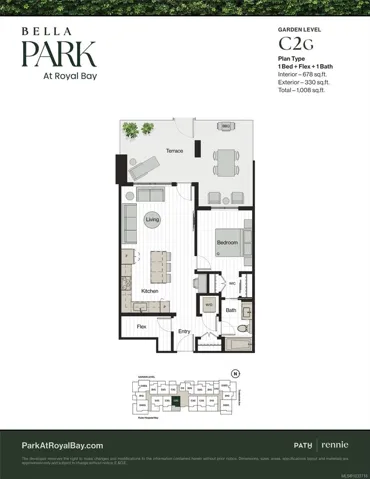 Step into the heart of Royal Bay’s vibrant seaside community at Bella Park, crafted by award-winning PATH Developments. This thoughtfully designed 1-bedroom + flex, garden-level home blends style, comfort, and functionality. The versatile flex room is perfect for extra storage, a dreamy walk-in closet, or a cozy reading retreat. Enjoy over-height ceilings and a large walk-out terrace offering a private entrance—ideal for pet owners. The modern kitchen features quartz countertops, stainless steel appliances, an induction cooktop, and ample storage. Residents enjoy resort-style amenities, including a Clubhouse with a full kitchen and social lounge, fitness centre, yoga studio, co-working space, wellness spa with an outdoor hot tub, sauna, cold plunge, and shower, kayak storage and 2 guest suites. Set within 2+ acres of green space with walking paths and community gardens, just steps to the beach, walking trails, and all of your everyday amenities at the Commons. Price + GST.