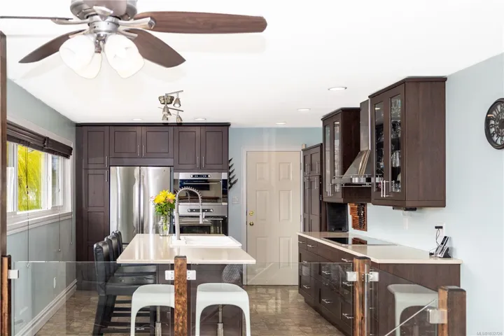 convenience and comfort. The tastefully renovated kitchen features quartz countertops and newer stainless