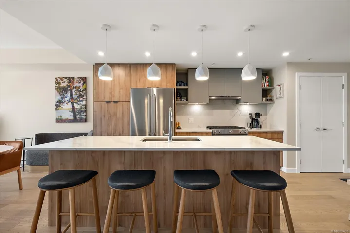 Experience the ultimate West Coast lifestyle in this 2 Bedroom, 2 Bathroom Condo. The heart of the home is a chef’s kitchen boasting an abundance of cabinetry, quartz countertops, a large island and premium stainless-steel appliances (gas stove). Primary bedroom with black out blinds and ensuite. Second bedroom is set up as an office with a murphy bed cabinet. Includes eco-friendly heating & cooling, fresh paint, new lighting and engineered hardwood floors throughout. Step outside to your balcony to BBQ or take a short stroll to Doumac Park Forest, Cordova Bay Beach or bike down Lochside Trail. Convenience is at your doorstep with Anytime Fitness, GiGi’s Italian Deli or fresh Sushi. Mattick’s Farm is a 10 min walk for groceries, boutiques and golf course. This unit includes underground parking, storage locker and bike storage. Perfectly suited for modern living, the building is pet and rental friendly. A perfect place to call home in one of Victoria’s sought after Seaside Communities.