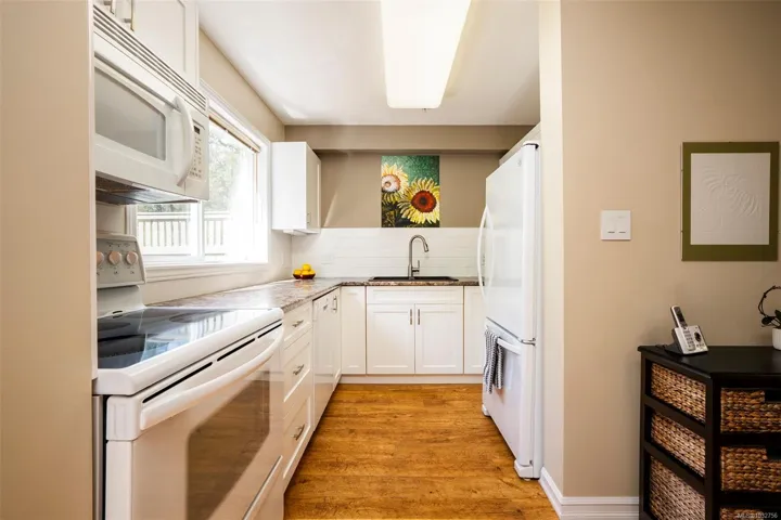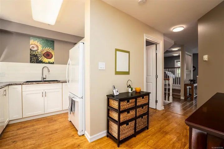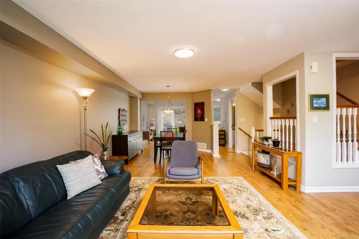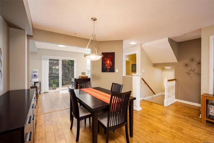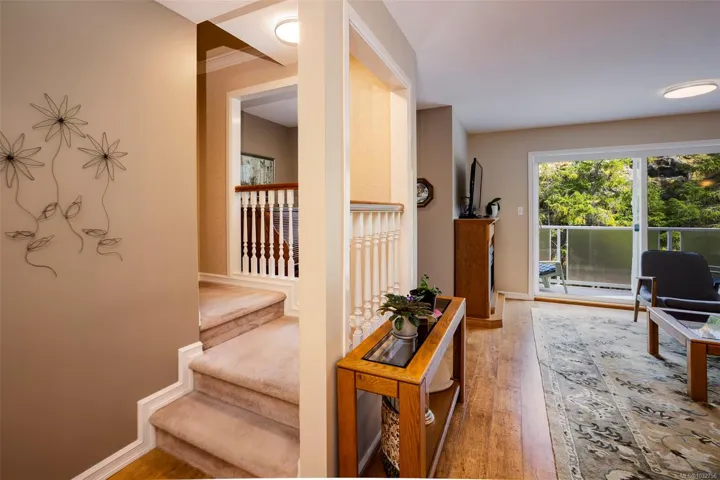 Welcome to this well-maintained 3bed, 3bath townhome sought-after Barrington Heights in Departure Bay. Tucked into a quiet natural setting, this home offers a bright main level where large windows and sliding doors frame peaceful treed and rocky outlooks and fill the space with natural light. The updated kitchen anchors the main floor and connects seamlessly to the dining and living areas, creating an easy flow for everyday living and entertaining. Upstairs features 3 well-sized bdrms, including a primary suite w/ ensuite. A single garage and large storage room add practicality. Step outside to your private backyard patio—an extension of the living space, ideal for relaxing and enjoying frequent visits from hummingbirds. Barrington Heights is a pet-friendly, well-managed strata known for its park-like setting and central scenic pond. Located just minutes from Departure Bay Beach and north-end amenities, this is easy, low-maintenance living in a desirable community.