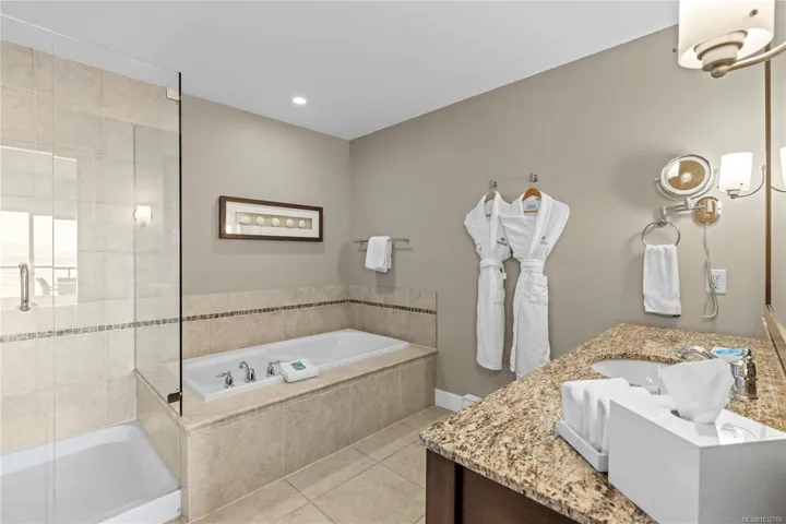 Enjoy an oceanfront resort lifestyle at Beach Club Resort. This 3rd floor unit is fully furnished and offers a well-appointed kitchen, inviting living room with gas fireplace, primary bedroom with spa-inspired ensuite, in-suite laundry, powder room, air conditioning, and a private balcony to enjoy the coastal setting. The lock-off portion includes two queen beds, its own bathroom, and separate balcony—ideal for flexible personal use or participation in the professionally managed rental program through Bellstar Resorts. Perfectly positioned beside the stairwell for easy beach access and close to parking for visiting guests, this north-end unit enjoys extra balcony seclusion and lovely shoreline views with spectacular summer sunsets. Quarter share ownership provides 12 weeks annually in the heart of Parksville’s waterfront resort community with spa, pool, hot tub, fitness centre, and beachfront dining just steps away. Data & meas. are approx. & must be verified if important.