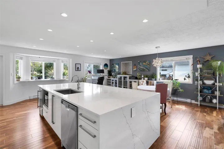 Welcome to 3859 Epsom Drive. This updated 6 bed, 4 bath home, built in 1998, is located in the sought-after Cedar Hill area of Saanich on an 8865sqft lot.Step inside to a grand foyer with acacia hardwood floors throughout. The open concept great room is centred around a beautifully updated kitchen with slow-close cabinetry, stainless appliances, quartz countertops, and an enormous island. The space flows seamlessly into the dining area, eating nook, and living room, all filled with natural light and opening to a covered deck and fully fenced, southwest-facing backyard—ideal for entertaining, gardening, or a future garden suite. The spacious primary with walk-in closet and ensuite featuring dual vanities & a walk-in shower. Downstairs includes a fourth bedroom or rec room with powder room, laundry, double garage, & a separate 2-bedroom suite (~750 sqft) with private entry, updated finishes, & its own laundry.