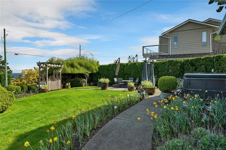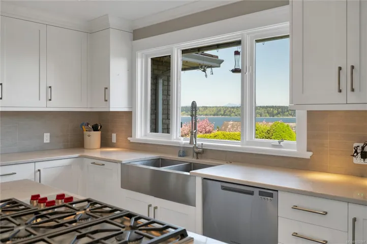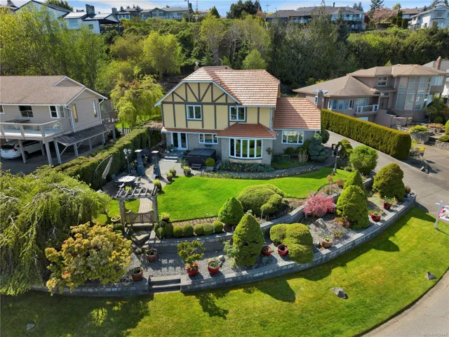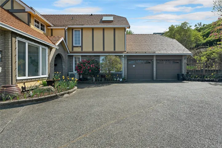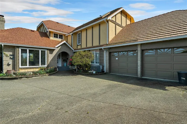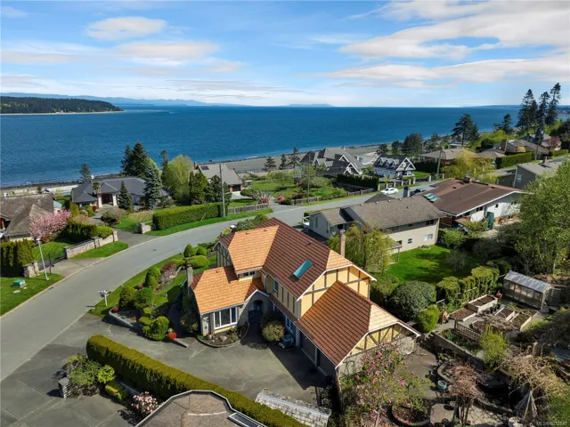 This charming Tudor-style home captures stunning ocean views and has been extensively updated throughout—offering the perfect blend of classic character and modern comfort. The thoughtfully remodeled kitchen (2019) features high-end Wolf appliances, quality finishes, and beautiful tile flooring, seamlessly complemented by warm oak floors that flow through the home. Comfort is ensured year-round with a mini-split heat pump upstairs and a newer furnace. Unwind in the spa-inspired bathroom complete with heated floors, while recent upgrades such as new gas fireplace inserts, updated trim, and a new central vacuum system add both style and convenience. The home also boasts a durable 50-year galvanized roof, a 4-ft concrete crawl space, a full irrigation system that waters the apple, kiwi & fig tree & concord grape vine producing fresh fruit for your liking. Meticulously maintained, this home is truly move-in ready—offering timeless design, quality upgrades, and breathtaking ocean views.