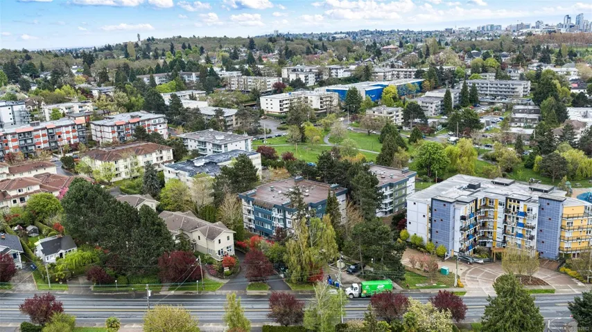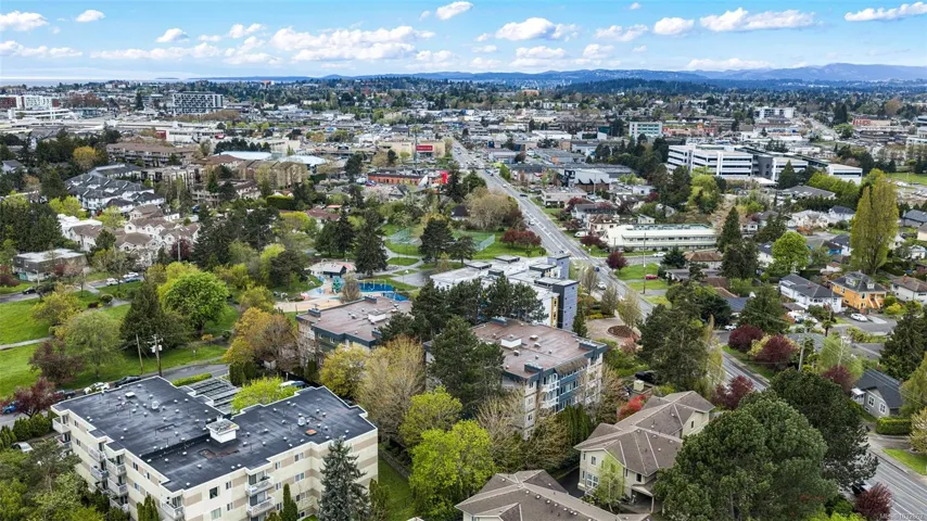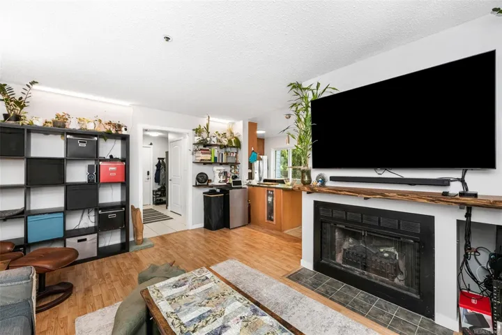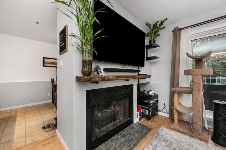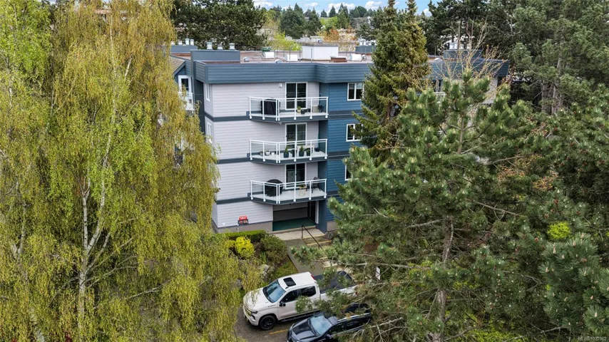 Like new! Buy with confidence knowing the building just completed a full make-over with new siding, new windows and new sliding glass doors. This large, bright 2 bd, 2 bth condo has over 1260sqft of inviting living space with an open kitchen area and real wood burning fire place in the living room. Cats are welcome and will love the ground floor corner unit on the quiet side of the building away from the road. The master suite has a walk-thru closet and ensuite. The second bedroom is on the opposite side giving each room a sense of privacy. Updated kitchen with full height maple cabinets, eating bar and a built-in pantry for storage. In suite laundry with full size appliances, laminate & tile floors and updated fixtures throughout. Secured underground parking and separate storage included. Conveniently located and within walking distance to Mayfair Mall, Uptown Centre and Thrifty Foods. Bus route and parks nearby as well.