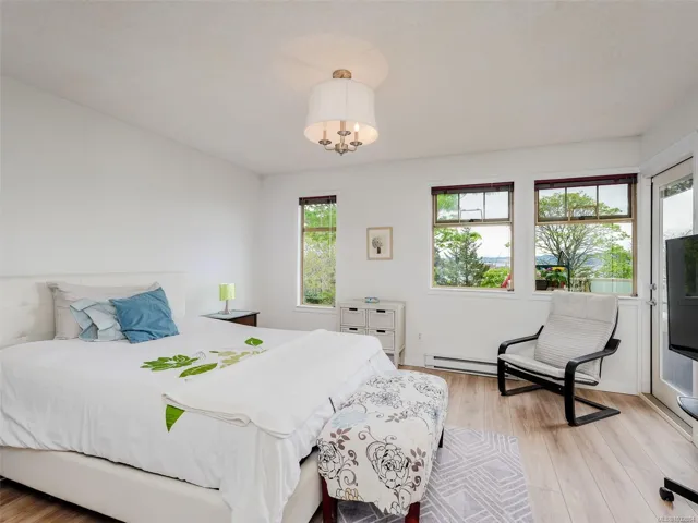OPEN HOUSE SAT 1-3PM A superbly located one level ocean view townhouse is on offer in one of Esquimalt’s finest developments. A low density complex with room to roam! A bright and spacious 2 bedroom & 2 bathroom with 1357′ of elegant living space. Enjoy stunning ocean and Olympic Mountain views from this centre ice location. This well-maintained, pet-friendly home features contemporary laminate floors, upgraded kitchen & lighting. The chefs kitchen is equipped with ample storage & breakfast nook, and the living and dining area boasts a step out south terrace and a cozy fireplace. The primary suite serves as a true retreat with a giant walk-in closet, a generous ensuite and additional deck access. Complete with an attached garage + driveway stall, additional storage locker, and a friendly community clubhouse. This home offers direct access to the E&N Trail and is just minutes from golf, shopping, and downtown Victoria. An over height crawlspace offers an amazing storage capacity.