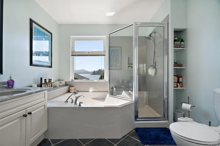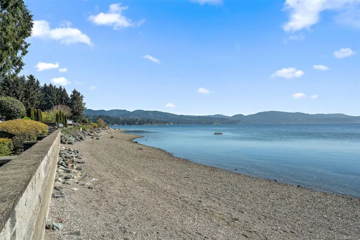 A rare oceanfront retreat where peaceful coastal living meets everyday comfort! This beautifully maintained home offers a front-row seat to the ever-changing beauty of the ocean, w/ eagles soaring overhead & even orcas coasting by w/ mountain vistas in the backdrop. Beach access from the back allows for paddle boarding & kayaking straight from your doorstep. Immerse yourself in the landscaped gardens, where a tranquil pond creates a setting for relaxation surrounded by the established fruit orchard & veggie garden. Inside, thoughtful updates enhance both style & function, including a renovated guest bath, updated wood flooring & carpet, new kitchen cabinetry, granite countertops & fresh interior paint. The spacious primary features its own private deck overlooking the ocean, large walk-in closet, & luxurious 5-pce ensuite w/ soaker tub. The 2nd bed is conveniently located on the main, along w/ a versatile office/den space on the first floor. Don’t miss this special waterfront property!