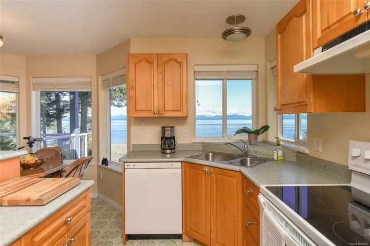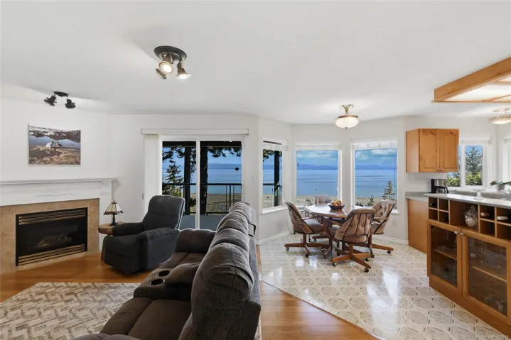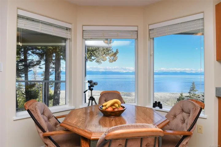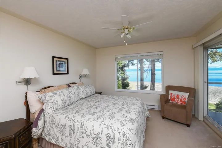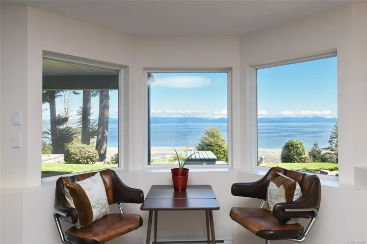 Set on a rare 0.53-acre walk-on waterfront lot, this 2,644 sqft rancher with walk-out basement offers exceptional coastal living. The main level features a bright kitchen with breakfast nook, open to a family room with gas fireplace & stunning views of the Salish Se & Coast Mountains. Sliders lead to a covered deck for year-round enjoyment. Formal living & dining rooms add elegance. The primary bedroom offers ocean views, deck access, walk-in closet & 4-piece ensuite with soaker tub. A den and laundry complete the main. Downstairs includes 2 bedrooms, a 4-piece bath & large rec room plumbed for a bar. Storage is abundant with a 6’4” crawlspace & 2 dedicated rooms for all your seasonal gear. Two trails take you to your own stretch of private beach where you can enjoy, kayaking, paddle boarding, fishing & swimming right at your doorstep. Level driveway, double garage & excellent well. Minutes to Kitty Coleman Beach Provincial Park and Seal Bay Nature Park & 10–15 mins to Comox/Courtenay.