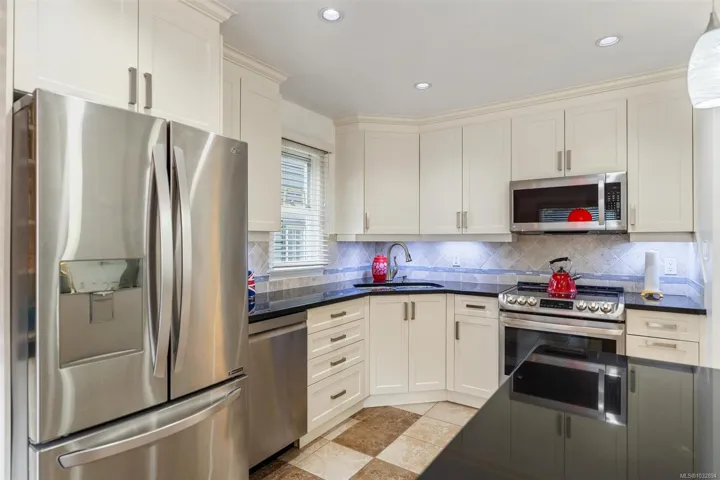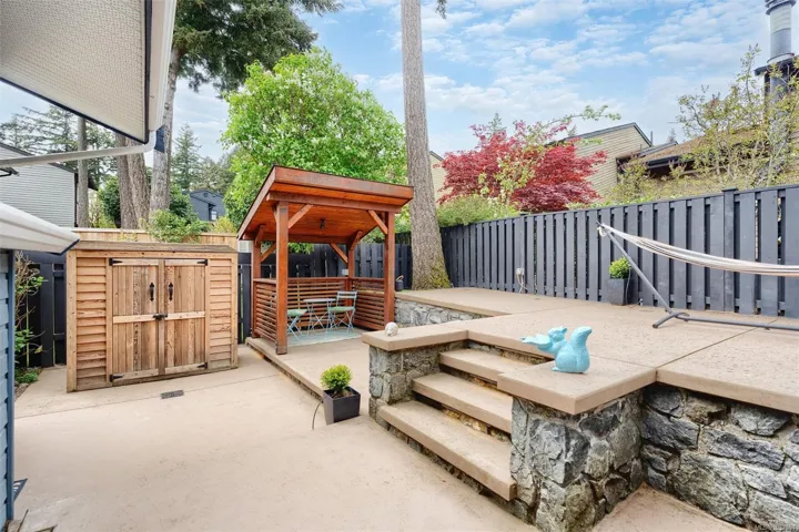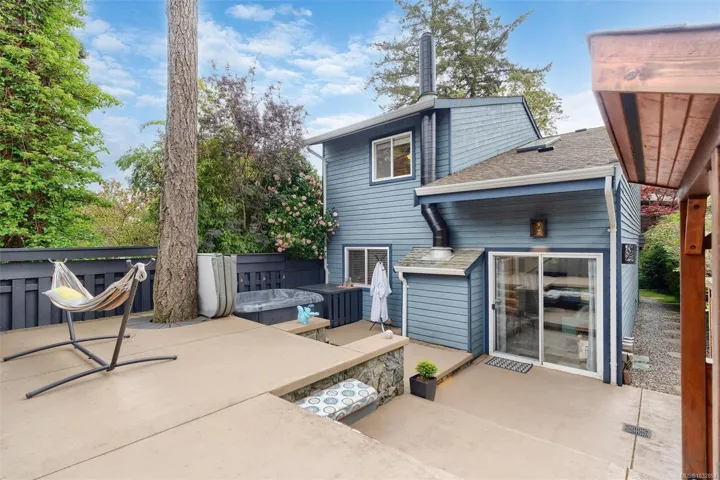 This immaculate detached house is situated at the end of a private cul-de-sac in a very sought after location in View Royal. This 3 bedroom 2 bathroom single family detached home has been completely upgraded from top to bottom, inside and out. Custom cabinets, quartz countertops, heated tile flooring on the main, and stylish bathroom upgrades. The backyard has been extensively updated with a low maintenance, 700 sqft lounge style patio, providing area for dining, BBQ, and sunny days. There is a detached garage, hot tub, irrigation and a storage shed also part of this great property.