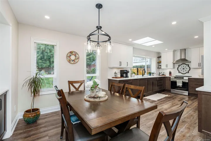 Set in the heart of the Uplands neighbourhood, this beautifully updated split-level home offers comfort, style, and convenience just steps from Uplands Elementary. Recent upgrades include a new roof, skylights, and a hot water tank. The bright main level features a sunken living room with a fireplace and a thoughtfully designed kitchen with ample cabinetry and views to the private backyard. Upstairs offers three bedrooms, including a spacious primary suite with heated-floor ensuite and access to a large covered deck. The lower features a spacious family room with a woodstove and an additional bedroom. Sliding doors open to a covered patio, perfect for relaxed evenings or seamless indoor-outdoor living. The backyard is private and beautifully landscaped, shaded by mature trees with peaceful garden views. Located on a quiet street near North Nanaimo shopping, dining, and Brookwood Park, this move-in-ready home offers space, comfort, and quality updates in a well-established neighbourhood