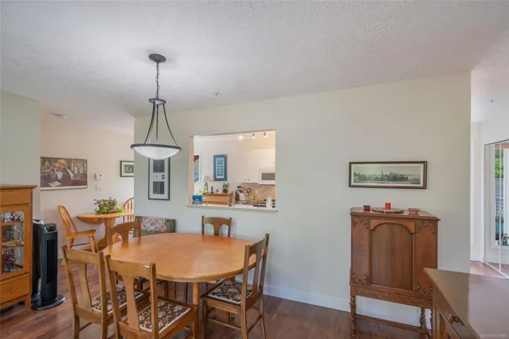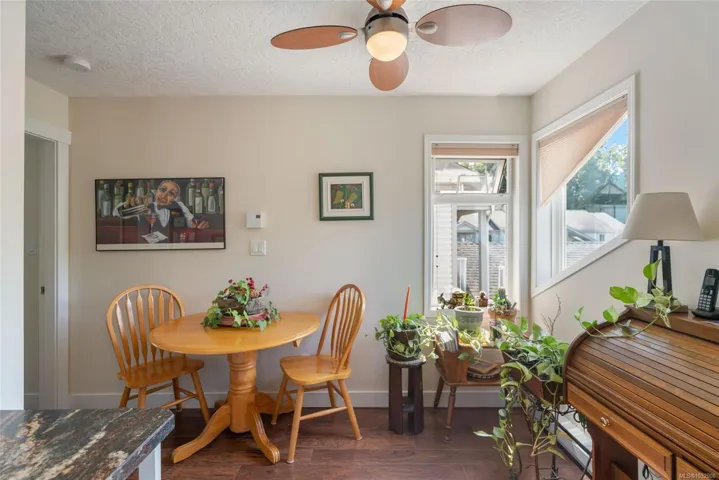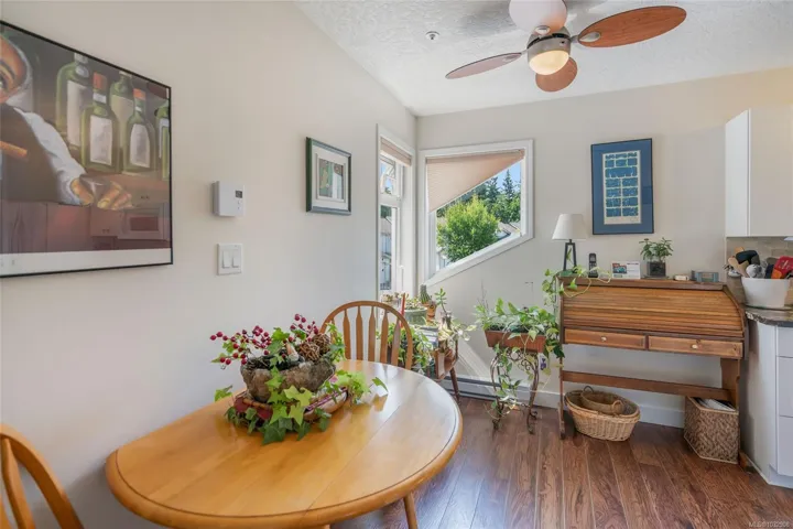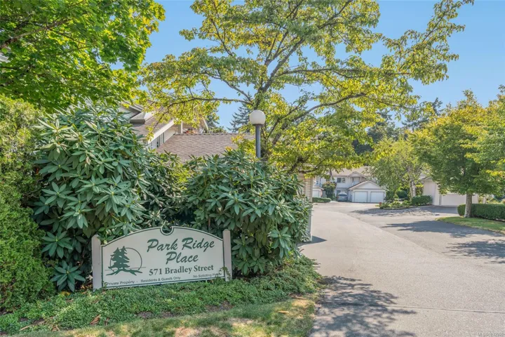 Desired uptown 2 bedroom ,2 bath townhome in popular Park Ridge Place.Convenient Location close to Departure Bay Ferry, Bowen Park,Downtown & Hullo Ferry.Beautifully updated suite with quality wood-look laminate floors, vaulted ceilings, custom finished stone fireplace (gas),bright w/big windows, custom signature series blinds, modern light fixtures & ceiling fans.Kitchen features dramatic marble-look countertops,pristine white cabinets &stainless hardware, deep double sinks & stainless faucet, stainless whirlpool flat top range w/convection oven, whirlpool sxs fridge with bottom drawer freezer, track lighting,breakfast nook, & pass through to the dining & living rooms.Spacious Primary bedroom with sliding door to the deck,ceiling fan,double mirrored his & hers closets,3pc ensuite with tile floors, new vanity, sink,toilet & large double shower.Lovely 2nd bed with ceiling fan & cheater door to main 4pc bath w/tile floors & tub surround. Large laundry & SxS front load W&D. Pets OK.