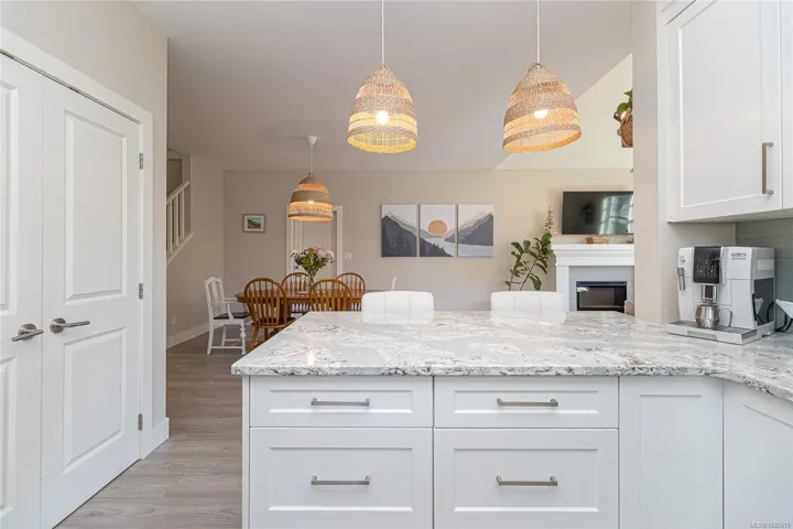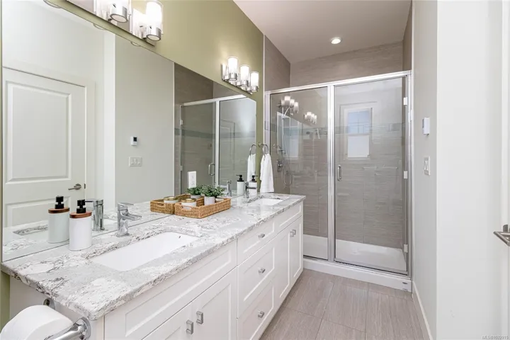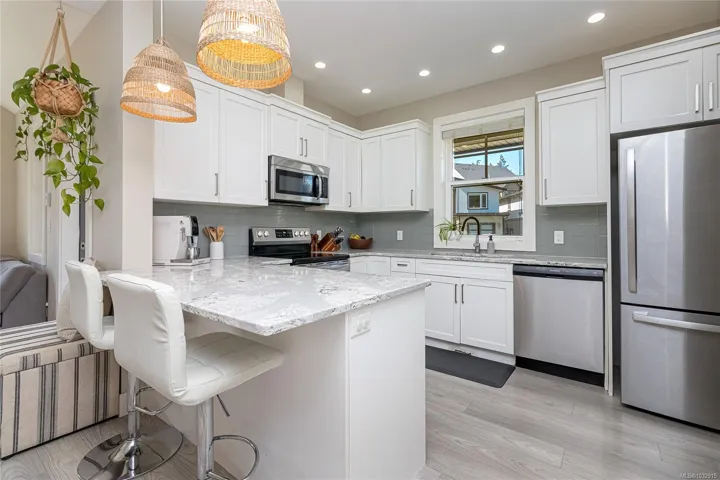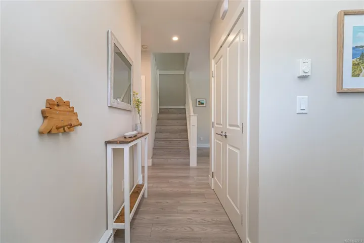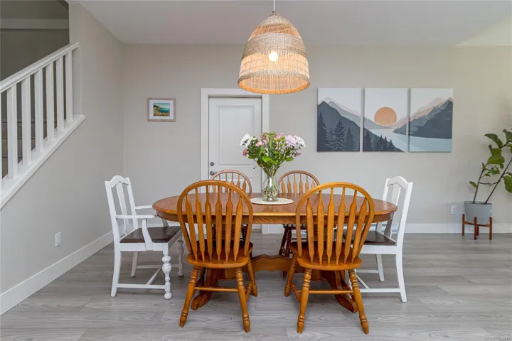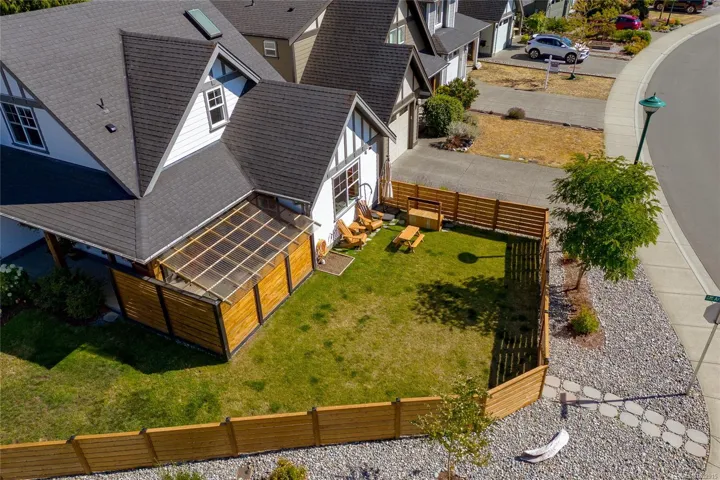 A refined, family-forward home, distinct in layout, setting and everyday livability. This stunning 3-bed, 2.5-bath 1,844sft residence sits on a generous corner lot backing onto parkland. The practical layout offers clear sightlines between main living areas creating a connected, functional flow, while the main-floor primary suite is a standout feature. The fully fenced yard is child and pet-friendly, with a private patio enclosure for extended outdoor use. Beyond the fence, Woodland Creek Park and surrounding forest provide a natural extension of the backyard. Children bike safely along flat streets and nearby trails. Walk to École Poirier, the new Sooke Library and the Sooke Child, Youth & Family Centre. Lovingly maintained and updated for day-to-day comfort, with a generous 5ft height crawl space and single-car garage providing practical storage. With direct access to trails, parks and close to Sooke Village, this home offers a balanced lifestyle that is second to none.