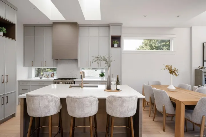 VACANT AND READY FOR IMMEDIATE POSSESSION! Situated in the Oak Bay high school catchment. This 2022 home sits on a beautiful tree lined street in coveted Oakland’s. This beautiful Spaciz designed home offers stylish space for the entire family with both living room and a family room. A bright and airy kitchen and open concept living even has a separate spice kitchen with its own appliances! 10 foot ceiling with vaults upstairs give a spacious open feel. Steps away from daycare, elementary school, and Haultain corners. Great for a coffee and a quick bite to eat. There is a nice legal two bedroom suite in the basement plus space for a in-laws as well. The separate family room has surround sound speakers and amp to powder distributed audio throughout the house. Concrete topper on both floors offers a solid home. Primary bed offers three closets, and a lovely primary ensuite Call now and don’t miss this rare opportunity.