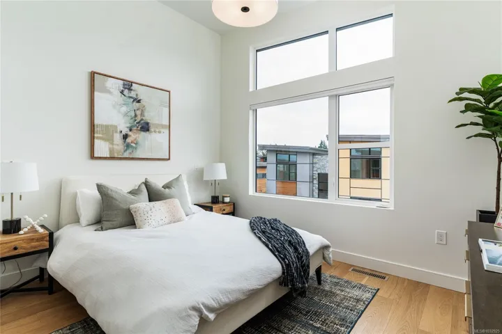 JUST LISTED! Luxury 3-bed, 3-bath, 2000+ sq ft townhome in a quiet enclave surrounded by mature homes & friendly neighbourhood. Contemporary features including soaring rooflines, stone/wood accents, transom windows + LR, DR, media room & office nook. Main level: 9′ coffered ceilings, floor-to-ceiling windows, engineered hardwood floors, fireplace, gourmet kitchen w/ quartz counters, wall oven, gas cooktop, XL island, SS appliances, open-concept dining, & powder rm. Upstairs: vaulted 13′ ceilings, luxe primary w/ walk-through closet & spa-like ensuite, 2 more beds, full bath & laundry. Lower: 8′ ceilings, media/rec room, additionation storage, utility closet & EV-ready garage. Extras: remote blinds, HW on demand, heat pump, organizers & quality fixtures. Fenced yard backing green space w/ water feature, shared garden bed plots & community park. Built by award-winning White Wolf Homes with full New Home Warranty. Mins to shops, trails & downtown Victoria.