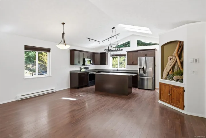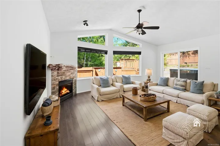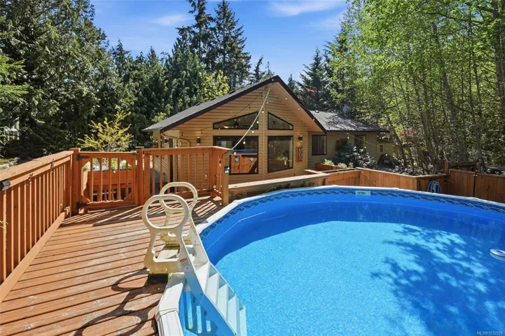 Delightful LQRV Country Paradise! Tucked away in gated Little Qualicum River Village, 20 minutes from Qualicum Beach, this 1536 sqft 3 Bed/2 Bath home sits on a .30-acre lot. Picture windows, overheight cathedral ceiling, spacious Rec Room, and large entertainer’s deck with hot tub and above-ground pool with wraparound decking. Tesla level 2 charger plus RV parking with hookups included. Bright Great Room with propane FP and vaulted ceiling, and Kitchen with island breakfast bar, stainless appliances, and ample counter space. The Primary Bedroom w/ 2-piece ensuite opens to Rec Room via barn door, ideal for a home office, with framing for potential garage conversion. Two additional Bedrooms, 4-piece Bath, and Laundry. Outdoor living includes private treed yard, expansive deck, hot tub, pool, and outdoor shower. Close to Little Qualicum River Falls, lakes, Cathedral Grove, Nanaimo shopping, and Courtenay/Comox, this home blends privacy and convenience. Book your viewing today.