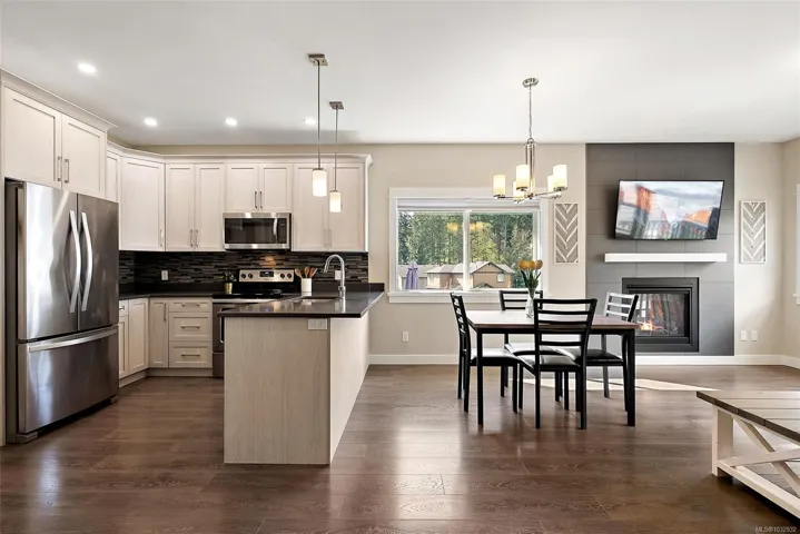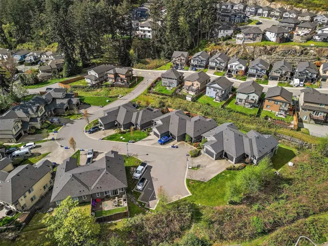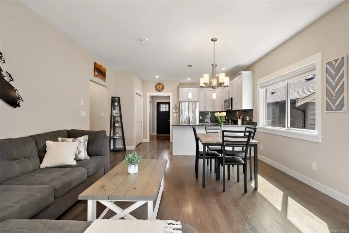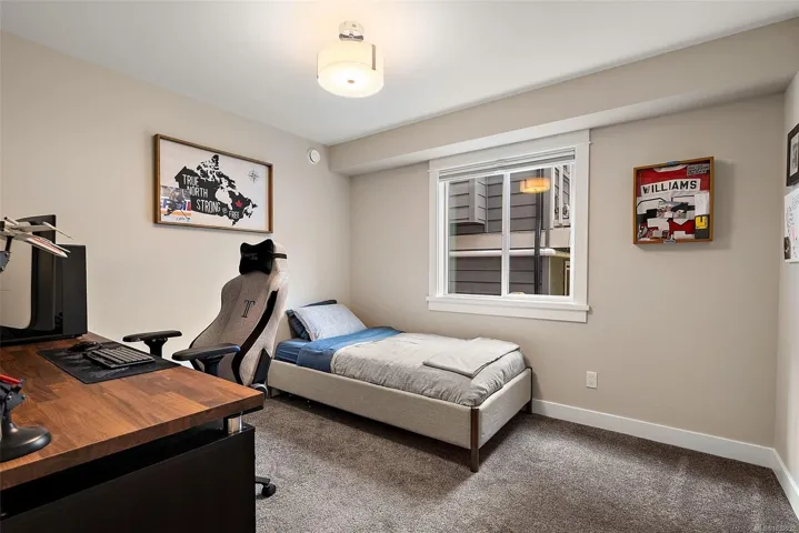 Tucked in a quiet cul-de-sac, this spacious 3 bed, 3 bath duplex-style townhome offers modern comfort and a small-community feel. Convenient main level living here! Kitchen, dining and living room flows to a large deck overlooking a fully fenced large yard with a peaceful greenbelt behind — perfect for privacy, growing your garden, space for your dog and kids to run around! The kitchen features SS appliances, a garburator and a pantry. A gas fireplace and heat pump keep you comfortable year-round. The main floor primary includes a walk-through closet and ensuite for easy, accessible living. Downstairs: two more bedrooms, full bath, rec room, laundry, and a big storage room — future gym, office, potential! Minutes to Thetis Lake, playgrounds, groceries, and amenities, the highway, plus a short walk to the 6 Mile Pub. Low strata fees and remaining warranty seal the deal here! Don’t miss out on this one! Open house Sat 11-1!