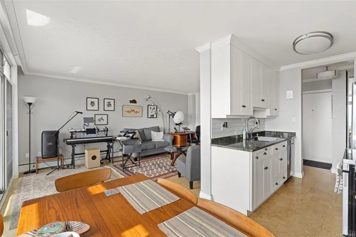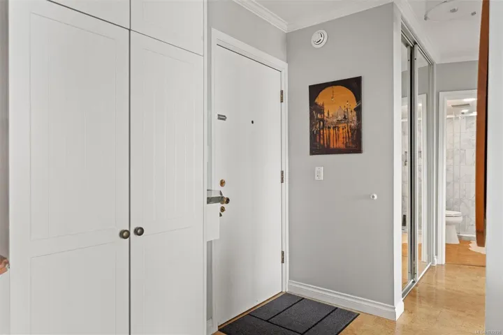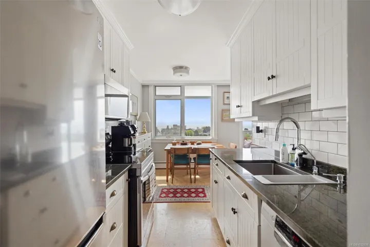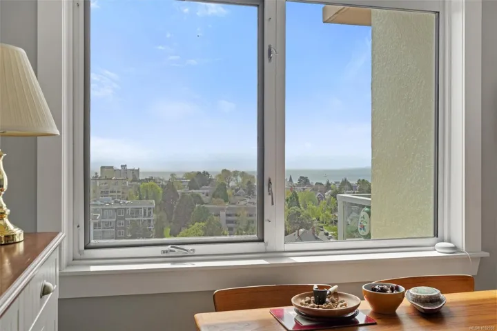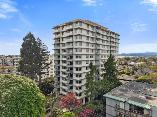 Welcome to Bickerton Court, a well maintained, steel & concrete building located in beautiful James Bay. Featuring 1BR/1BA, this bright, airy, south facing unit is located on the 10th floor and features a spacious open layout with beautiful cork floors, custom built-in cabinetry and walls of windows showcasing panoramic views of James Bay to the Strait of Juan de Fuca & the Olympic Mtns. The many building amenities are sure to please, including a large indoor pool, beautiful courtyard gardens with covered BBQ, a library, meeting room, workshop, bike storage, car wash area, a Tiki Lounge for entertaining, and a rooftop fitness area & recreation space with spectacular 360 degree views! All of this, as well as a guest suite! Ideally located adjacent to Beacon Hill Park and within walking distance to downtown Victoria’s cafés, shops & restaurants, the inner harbour, Cook St Village, trails along Dallas Rd Waterfront & transit. Everything you need and more is right here at your doorstep.