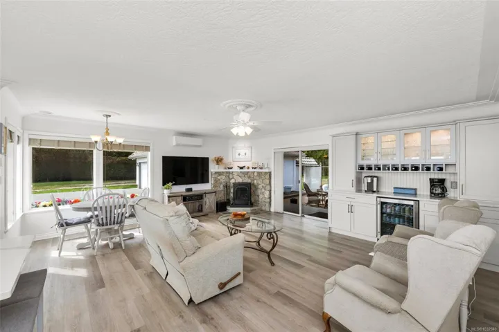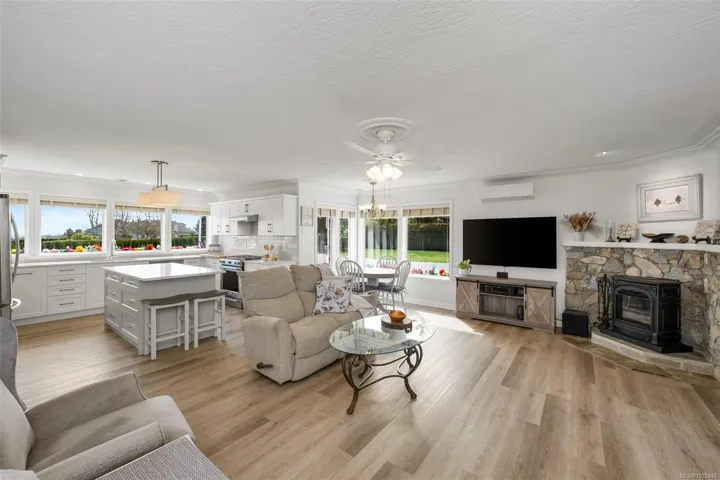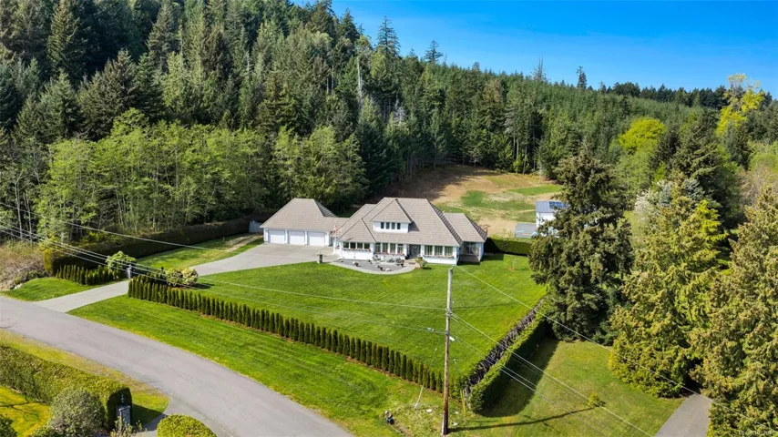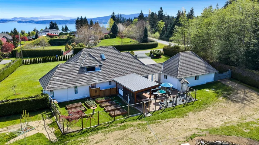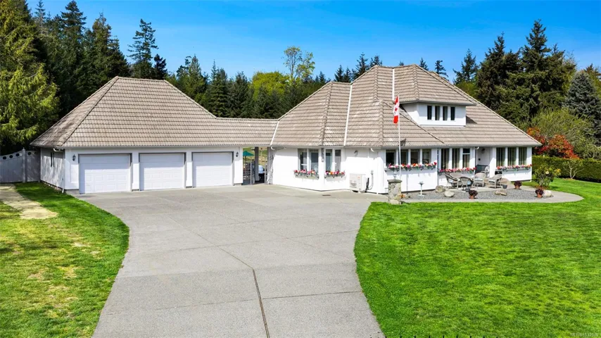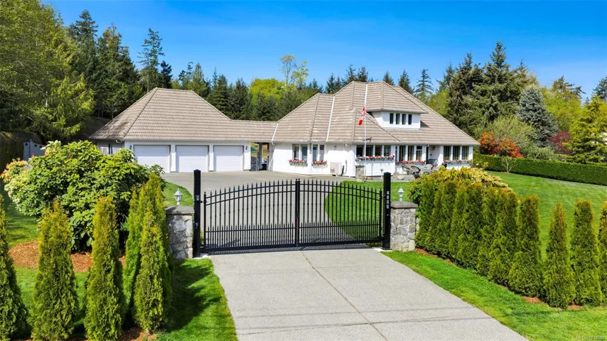 Private 2-acre ocean-view estate in Mill Bay blending refined living with relaxed West Coast charm. This beautifully updated 3-bedroom, 3-bath residence offers desirable main-level living, a refreshed kitchen and family room, and bright, welcoming spaces designed for everyday comfort. Large windows invite natural light and capture filtered ocean views. Outdoors, enjoy a peaceful seasonal pond, a unique cantina-style entertaining area, and a hot tub—perfect for hosting or unwinding in complete privacy. A newly constructed (2024) insulated 3-bay shop with craft room and heat pump provides exceptional versatility for hobbies, storage, or workspace. Gated entry, ample RV parking, and a triple garage add convenience and function. Set in a quiet, private setting, this property offers a rare combination of space, privacy, and modern upgrades—an ideal retreat to call home.