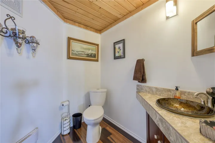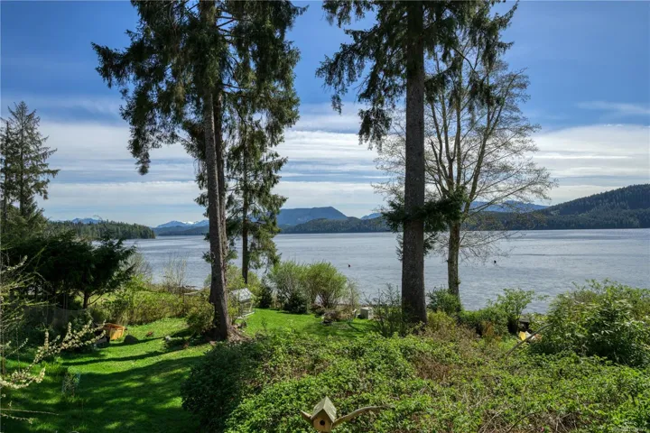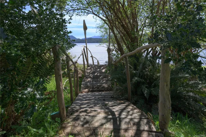 Truly unique, one-of-a-kind waterfront home in beautiful Coal Harbour. This stunning property features soaring ceilings in the open-concept living & kitchen area, perfectly designed to capture breathtaking ocean views. Double doors lead to a partially covered wraparound deck extending to the primary suite & private hot tub area. The main level offers a convenient half bath, while the spacious primary suite includes a walk-in closet & beautiful ensuite with a spacious tiled shower with ocean views. The lower level is currently fully self-contained, with potential to connect via interior stairs. It includes a full bathroom, two rooms (both currently used as bedrooms), one with a wet bar and basic kitchen amenities. This level also opens to a covered deck with equally impressive views. Set on a walk-on waterfront lot, the property boasts a whimsical garden complete with a berry patch, fruit trees & greenhouse. A 20×20 detached garage & ample parking complete this exceptional property.