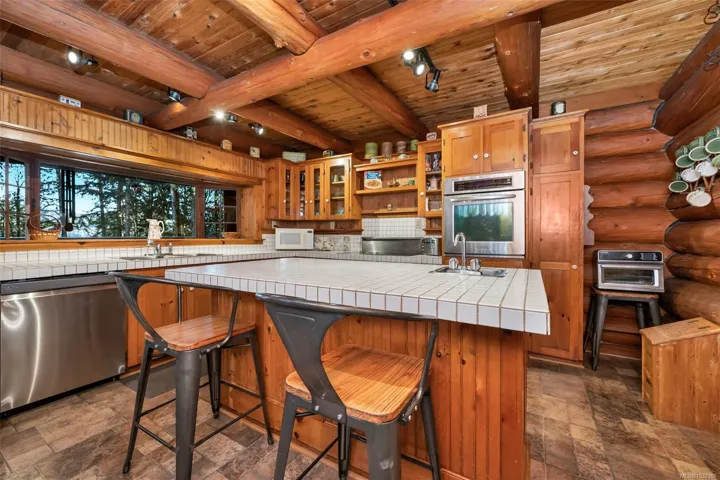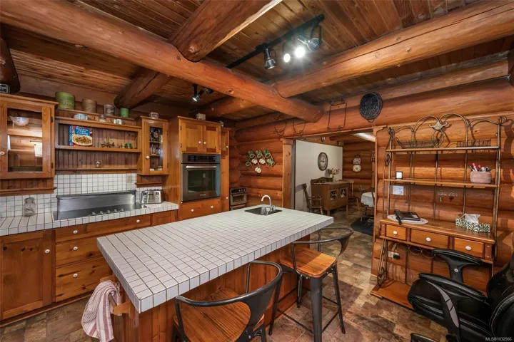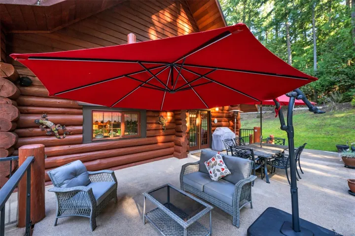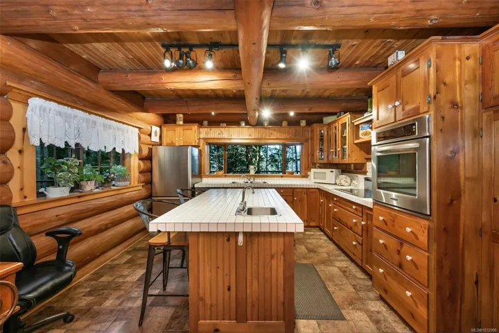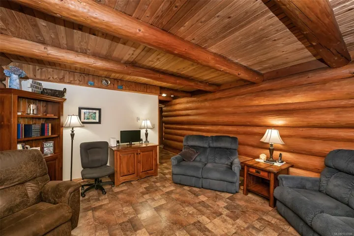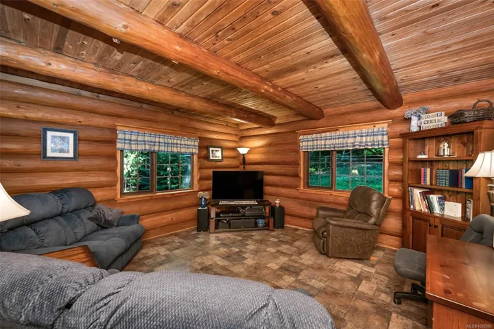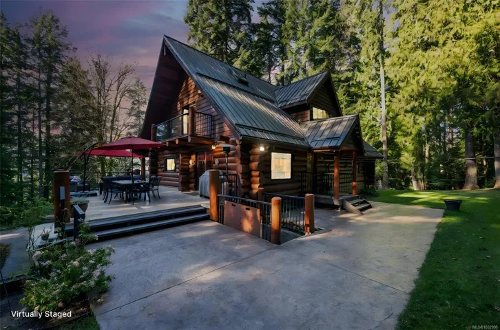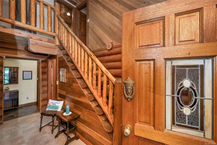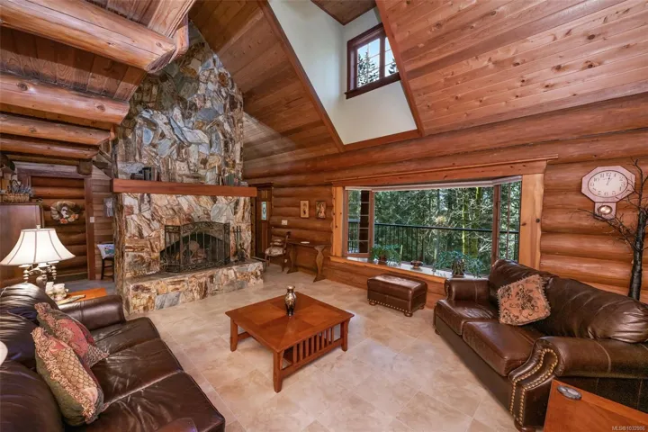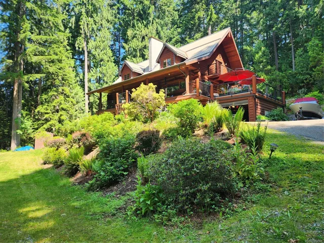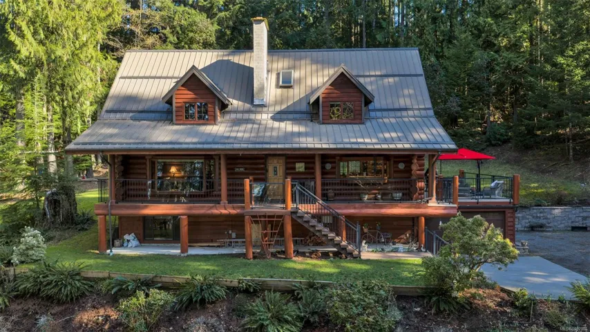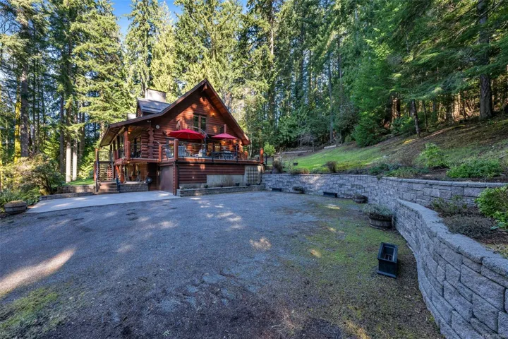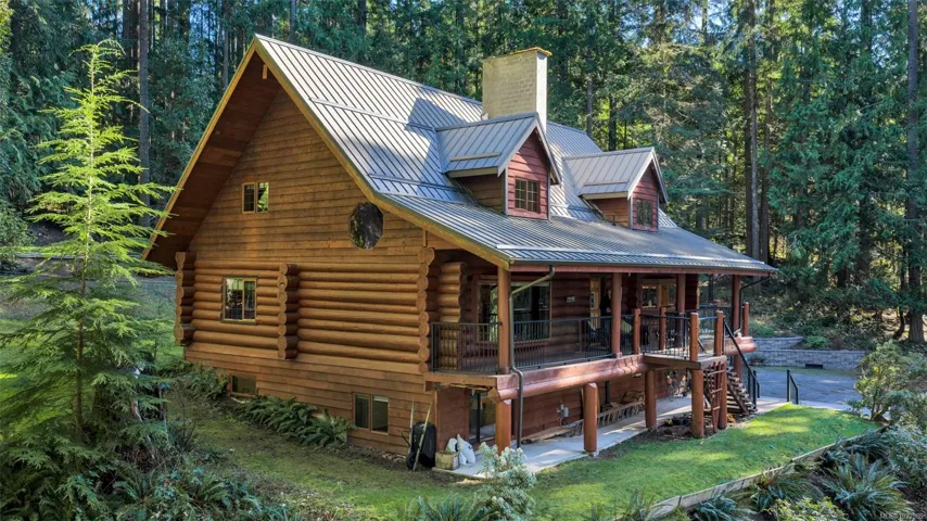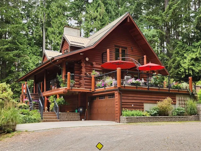 Fantastic opportunity to own a lovingly maintained, very private, one-owner log home across from public lake access on 3.12 acres of natural, partially forested beauty! The 3 bed, 2.5 bath, 4,000 sqft home sits offers lake glimpses, mature trees, metal roof, geothermal heating & inviting outdoor living spaces. As you come up the private driveway you are instantly taken back by this home & setting. Main level features a bright kitchen with large island & pine cabinetry, a dining area opening to a spacious deck & patio & a vaulted ceiling living room with stone fireplace, plus family room, powder room & laundry/mudroom. Upstairs has 3 generous bedrooms, including a primary with walk-in closet, 5-piece cheater ensuite & private deck. Lower level offers flexible family space, potential 4th bedroom, 2 dens, storage & workshop. Located only minutes from the amenities of Lake Cowichan, & only an hour or so from the west coast for salmon fishing, enjoy the endless recreation this area offers!
