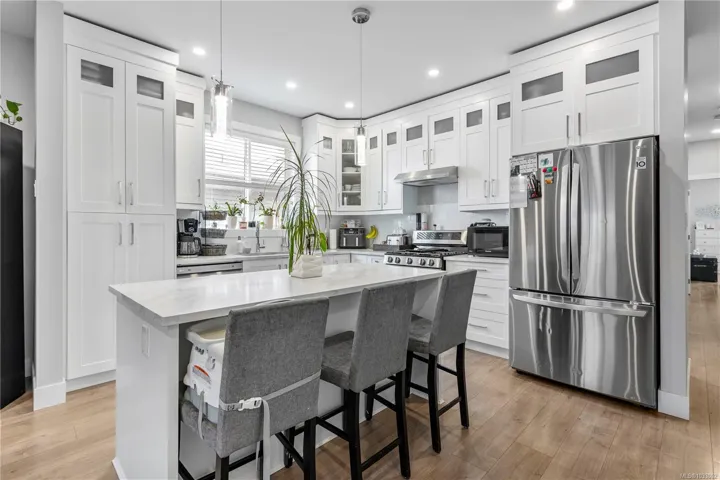 Located on a quiet no-thru road in the desirable Westwood Lake area, this 6 bdrm, 4-bthrm home includes a 2 bdrm, 1 bthrm suite & is just moments from the lake’s trails, beach & waterfront. The main level features a bright open-concept layout with stylish finishes, including a dining area & a well-sized living room anchored by a cozy gas fireplace. The kitchen is complete with white cabinetry, quartz counters, a tile backsplash, stainless appliances & island with breakfast bar. From the living area, access the large front facing deck. The main floor includes 3 bedrooms, featuring a spacious primary with a 3 piece ensuite, plus a 4 piece main bath & laundry. Downstairs, a 4th bedroom with ensuite offers extra space. The property includes a self-contained 2-bedroom, 1-bathroom suite with a separate rear entry, open living/kitchen, and in-suite laundry. Outside, enjoy a large, fully fenced backyard backing onto mature trees for added privacy. A versatile home in a prime Nanaimo location.