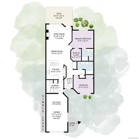 Highly sought-after patio home in desirable Arbutus Park—don’t miss out. Offering 1,276 sq ft of comfortable main-level living, this bright 2 bed/2 bath rancher is ideal for easy, stair-free lifestyle. A tiled entry w/ skylight welcomes you into rich hardwood floors, a sunny bay window, & a cozy gas fireplace in living rm w/ skylight. The spacious kitchen features abundant cabinetry, sun tube and a generous dining area perfect for hosting family & friends. Retreat to oversized bedrooms, incl a primary suite w/ walk-in closet & large ensuite. Enjoy your private, fenced patio surrounded by lush shrubs—your own peaceful retreat. Large single garage w/ attic storage & bonus Murphy bed included. This well-run, pet-friendly 55+ strata offers a friendly, welcoming community atmosphere, newer roofs (2023), and steps to scenic trails to downtown & recreation, plus a short drive to the Beach. Quietly tucked at the end of the complex—don’t miss this opportunity! Your Best Life, Your Next Chapter!